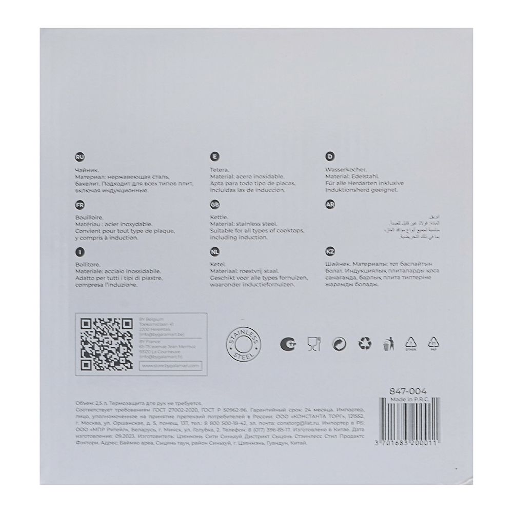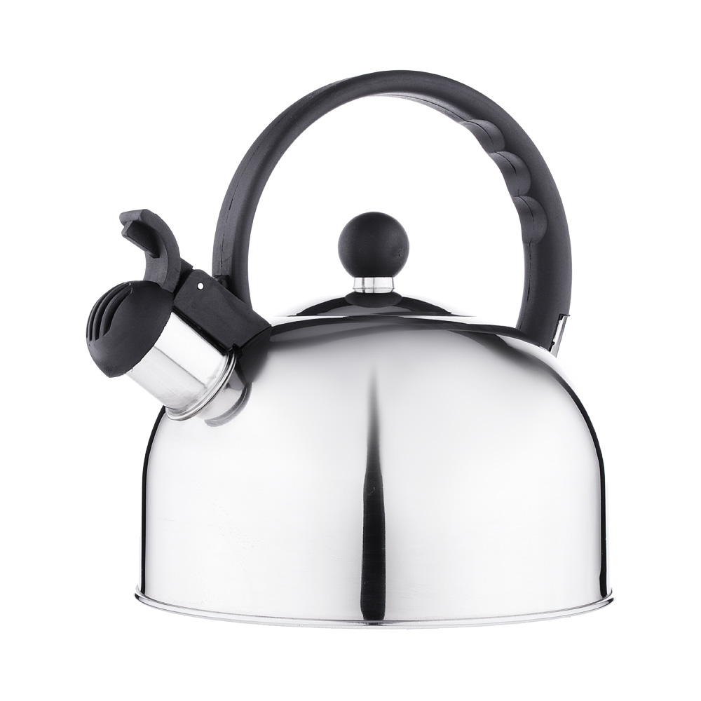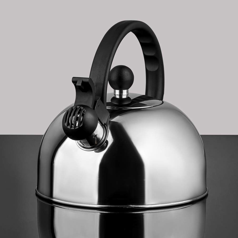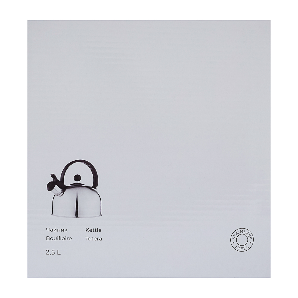 Стальной чайник объемом 2,5 л удобен для большой семьи, на праздниках и дружеских посиделках: можно заварить чай на 10 человек за один раз. Изготовлен из качественной нержавеющей стали. Подходит для всех типов плит, включая индукцию. Для вашего удобства чайник оборудован эргономичной ручкой и встроенным несъемным свистком, который оповестит вас о закипании воды.