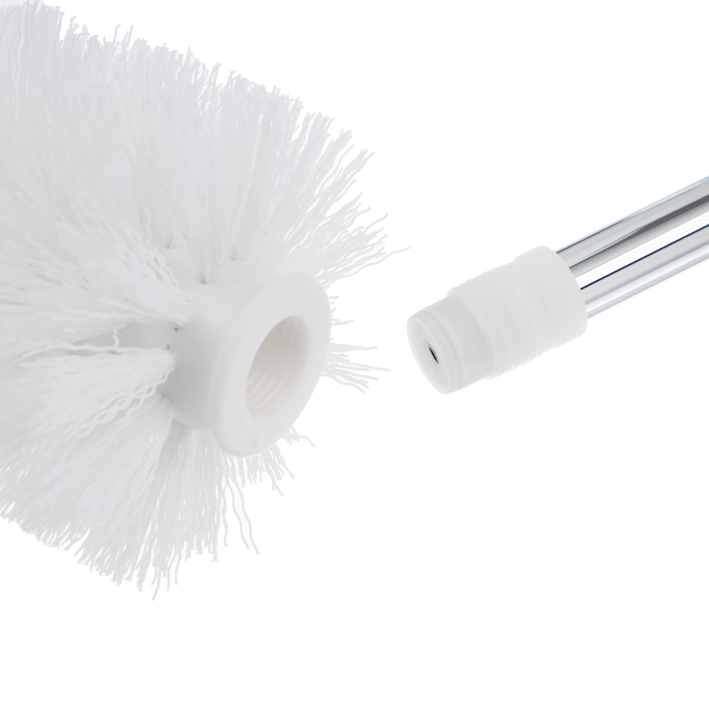 Ершик для унитаза предназначен для поддержки чистоты в туалетной комнате. Оснащен жесткой щеткой из синтетических волокон. Емкость для воды изготовлена из прочного и устойчивого к негативным внешним воздействиям стекла. Ручка и подставка изготовлены из хромированной нержавеющей стали. Легко отмываются от загрязнений, надолго сохраняют первоначальный эстетический внешний вид.