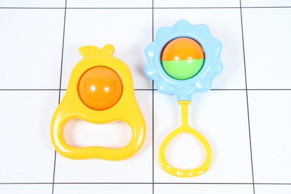 В комплекте 2 погремушки с шариком, которые издают негромкий звук: цветочек и фрукт. Размер упаковки 165 ? 130 ? 45 мм