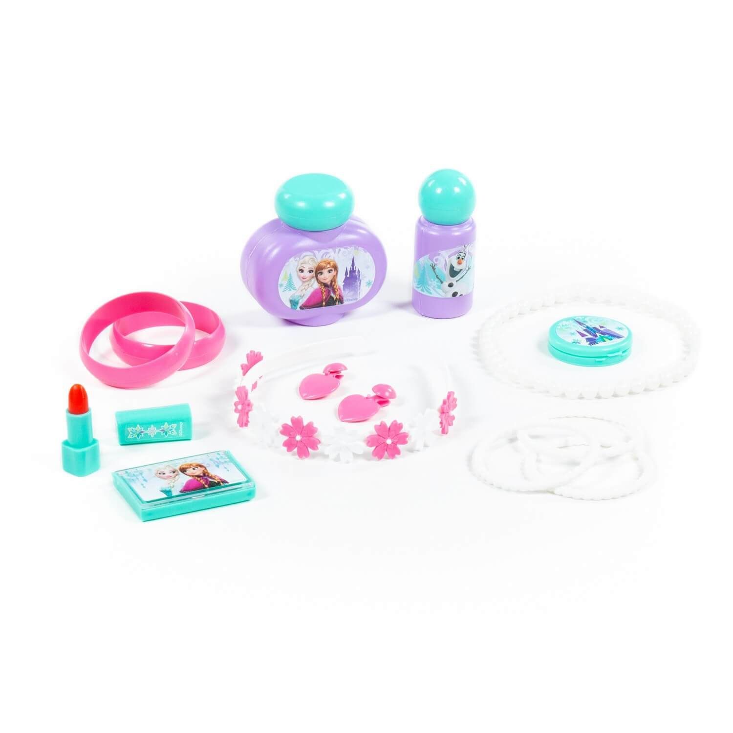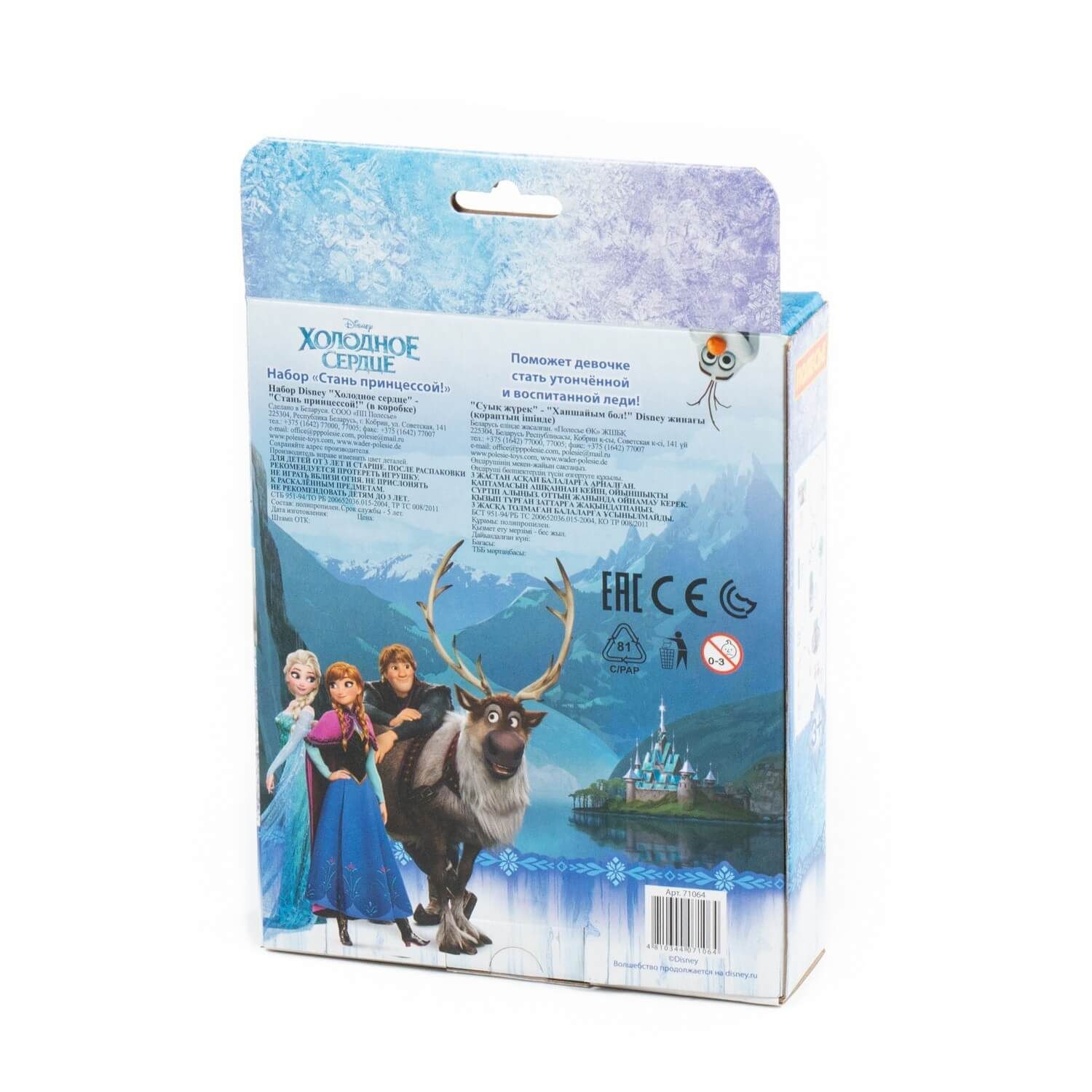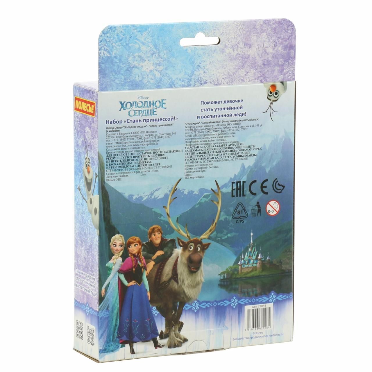 С игровым набором Disney «Холодное сердце» — «Cтань принцессой!» от фабрики «Полесье» девочка сможет ощутить себя утончённой леди и принцессой диснеевских сказок! Комплект детских украшений и парикмахерских принадлежностей украшен тематическими наклейками и выполнен в стилистике анимационного фильма «Холодное сердце». Игровой набор приучает девочку следить за собой, быть опрятной. В набор входят следующие аксессуары: обруч для волос — 1 шт., флакончики для косметических средств — 2 шт., клипсы — 1 пара, браслеты — 5 шт., бусы — 1 шт., тени — 1 шт., помада — 1 шт., пудреница — 1 шт. Набор упакован в красочную коробку. Набор Disney «Холодное сердце» — «Cтань принцессой!» позволит девочке организовать свой салон красоты или парикмахерскую, придумывать новые образы и прически, развивая воображение и фантазию!