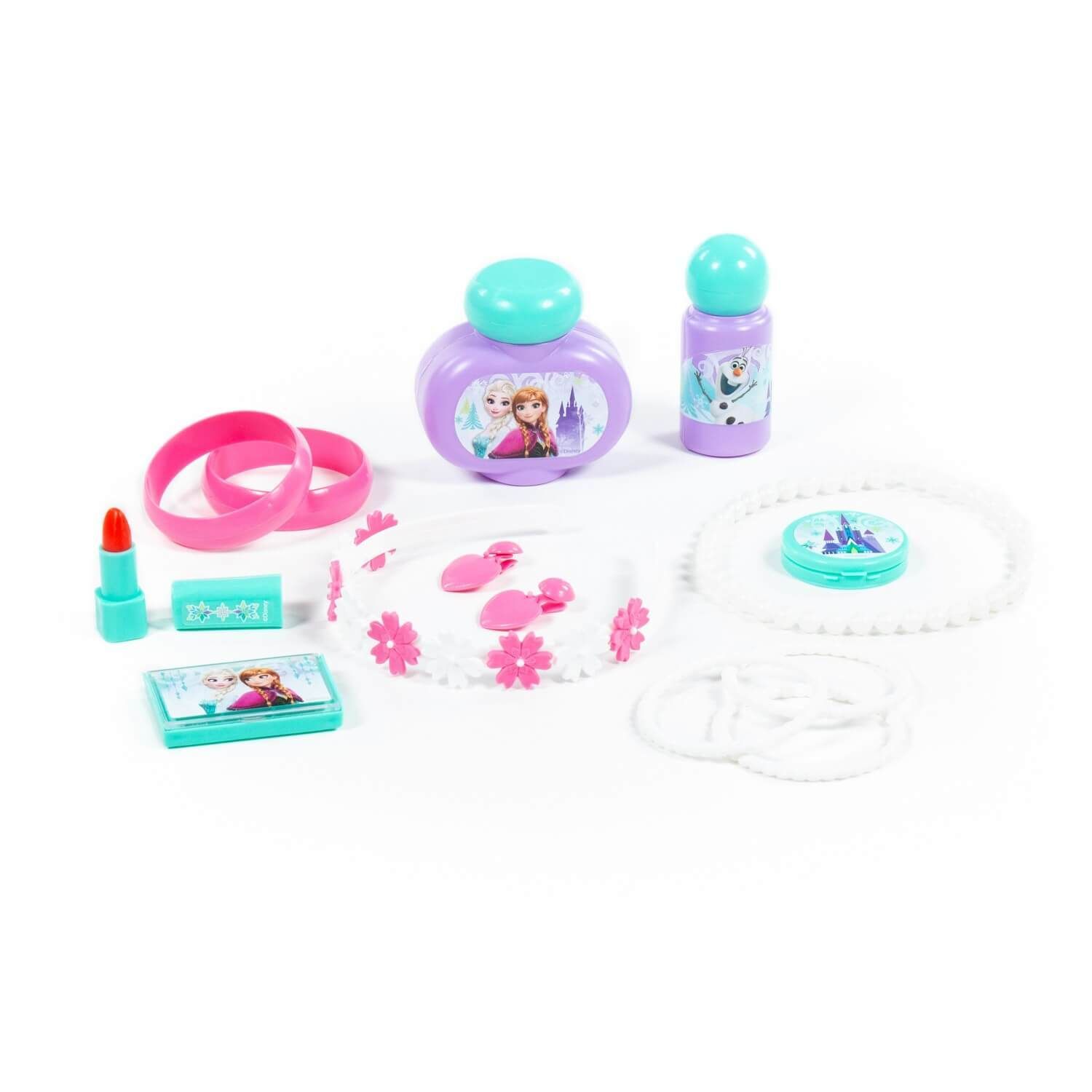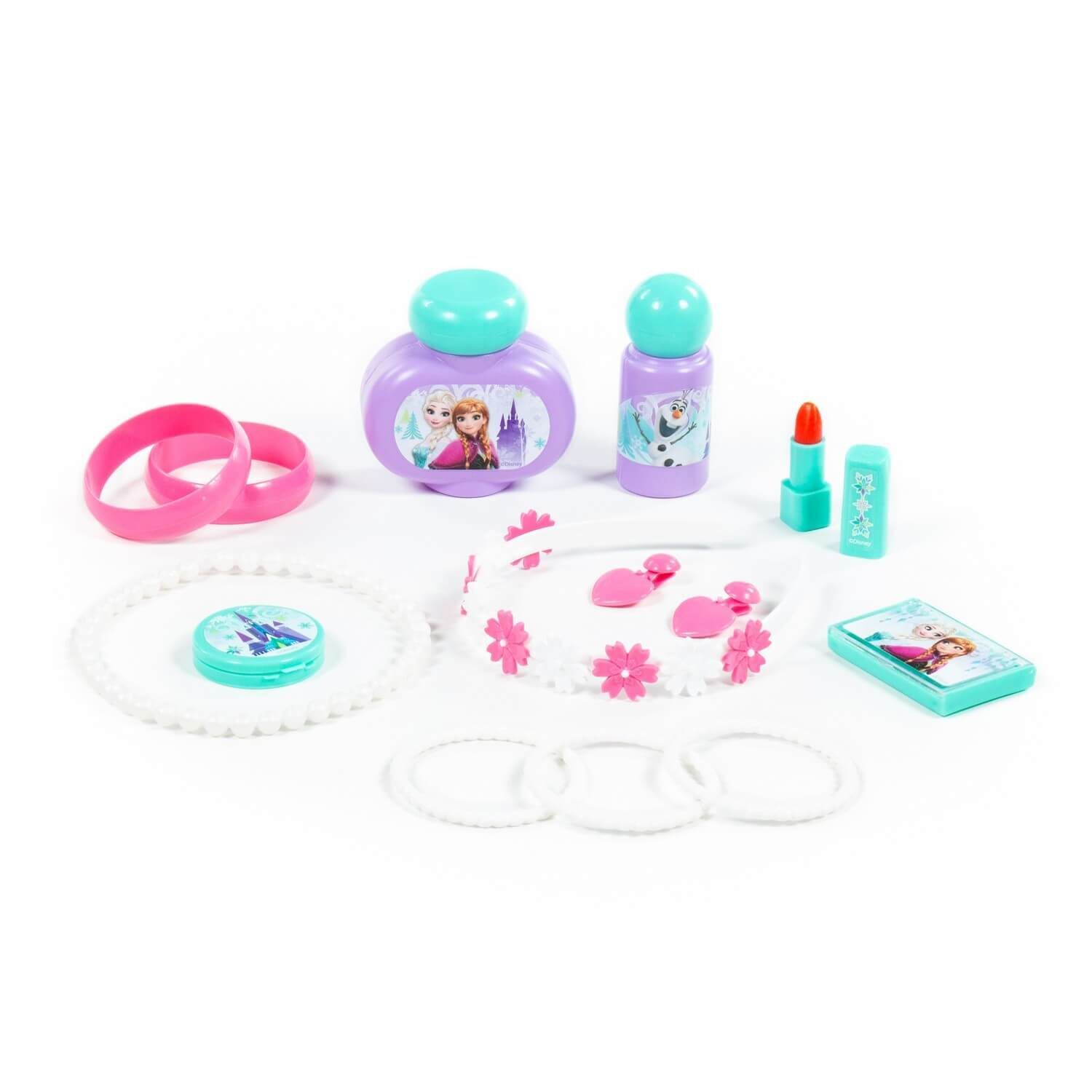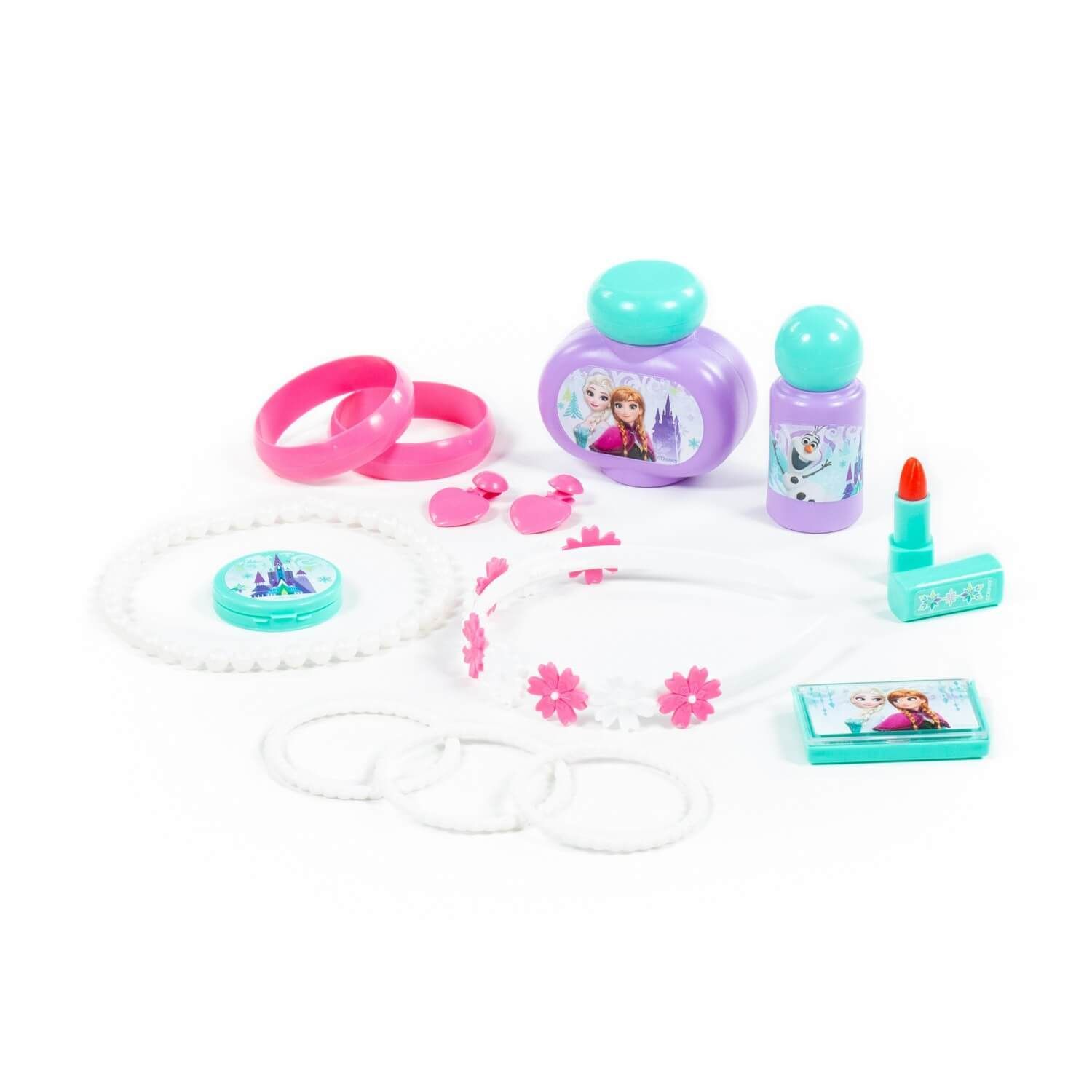 С игровым набором Disney «Холодное сердце» — «Cтань принцессой!» от фабрики «Полесье» девочка сможет ощутить себя утончённой леди и принцессой диснеевских сказок! Комплект детских украшений и парикмахерских принадлежностей украшен тематическими наклейками и выполнен в стилистике анимационного фильма «Холодное сердце». Игровой набор приучает девочку следить за собой, быть опрятной. В набор входят следующие аксессуары: обруч для волос — 1 шт., флакончики для косметических средств — 2 шт., клипсы — 1 пара, браслеты — 5 шт., бусы — 1 шт., тени — 1 шт., помада — 1 шт., пудреница — 1 шт. Набор упакован в красочную коробку. Набор Disney «Холодное сердце» — «Cтань принцессой!» позволит девочке организовать свой салон красоты или парикмахерскую, придумывать новые образы и прически, развивая воображение и фантазию!