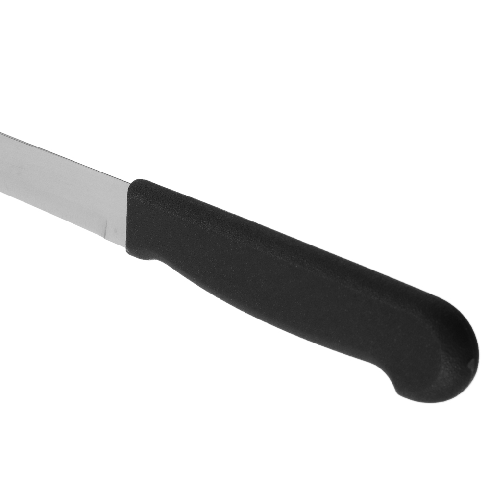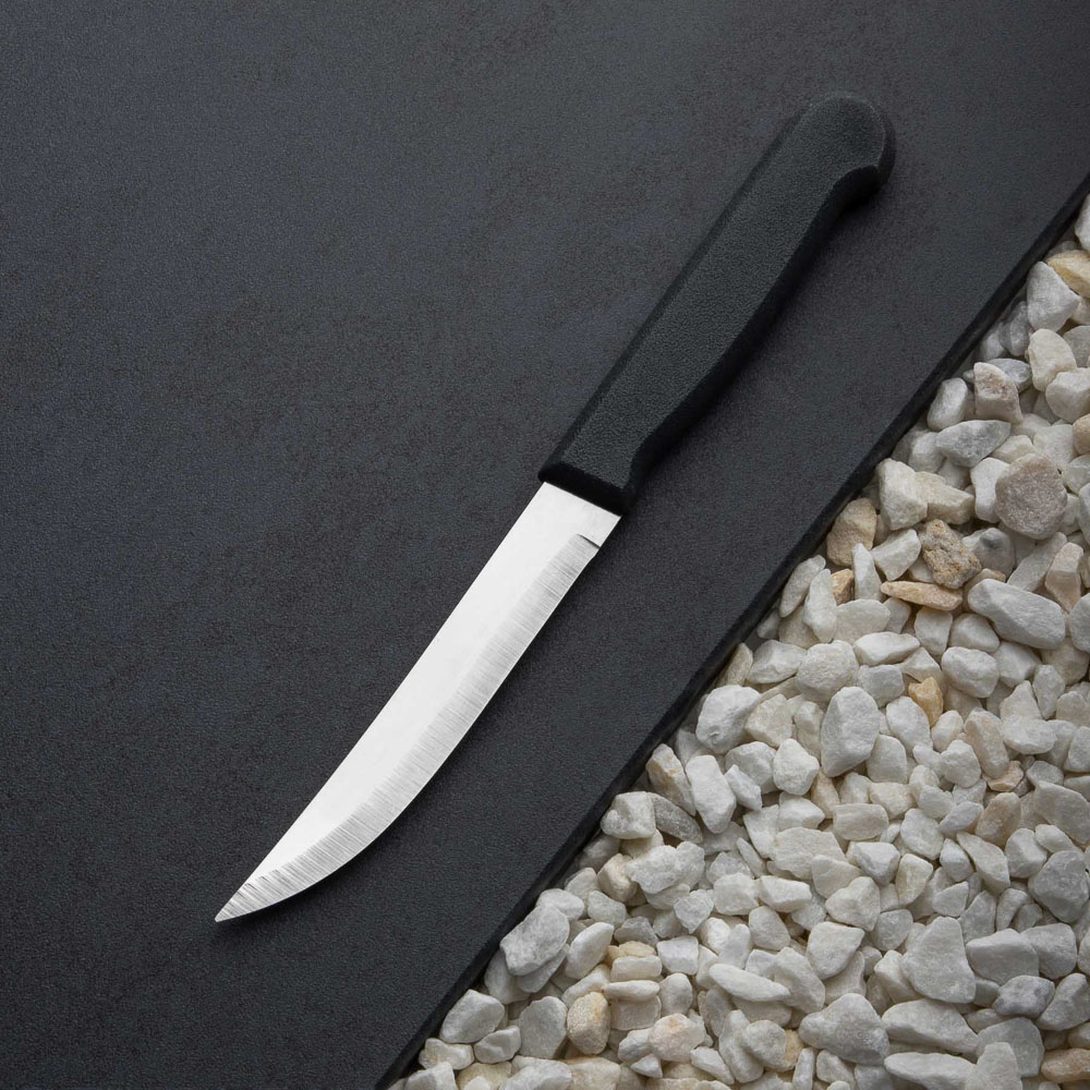 Кухонный нож Мастер с пластиковой ручкой и лезвием длиной 12,7 см - идеальный инструмент для решения различных кулинарных задач. Благодаря высококачественной нержавеющей стали, из которой изготовлено лезвие, нож отличается прочностью и остается острым даже после длительного использования. Эргономичная пластиковая ручка обеспечивает надежный и удобный захват, предотвращая выскальзывание ножа из рук. Имеет сдержанный и строгий дизайн, вписываясь в интерьер любой кухни.