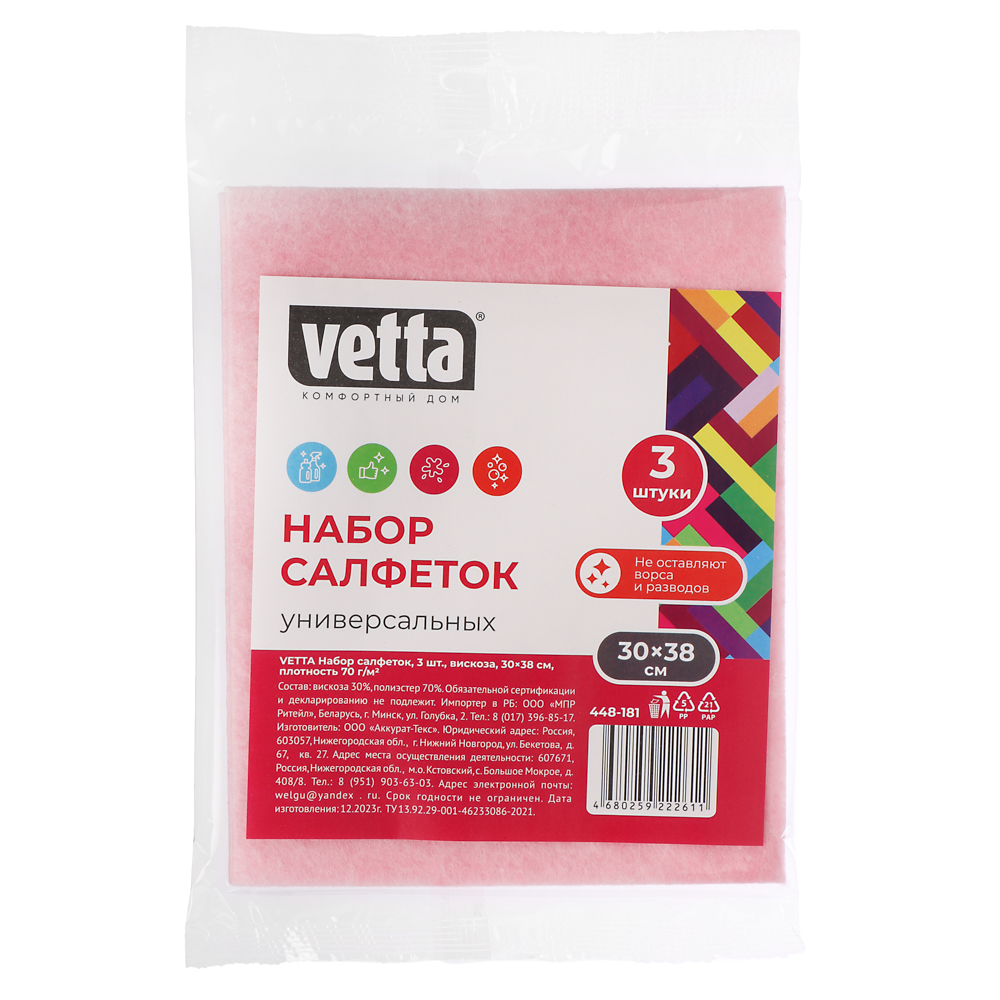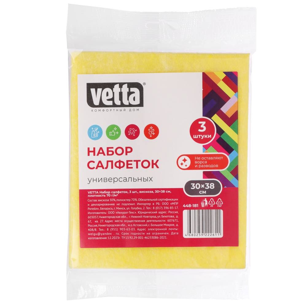 Многофункциональные салфетки из вискозы 30х38 см отличаются высокой прочностью, долговечностью и гигроскопичностью. Подходят для всех типов поверхностей – сантехники, мебели, посуды. Не оставляют разводов и ворса. Многоразовые – их можно стирать в стиральной машине при температуре до 60 градусов. В упаковке 3 салфетки. Внимание! Товары представлены в ассортименте, выбор цветов или моделей не предоставляется. На фотографиях могут быть представлены не все варианты.