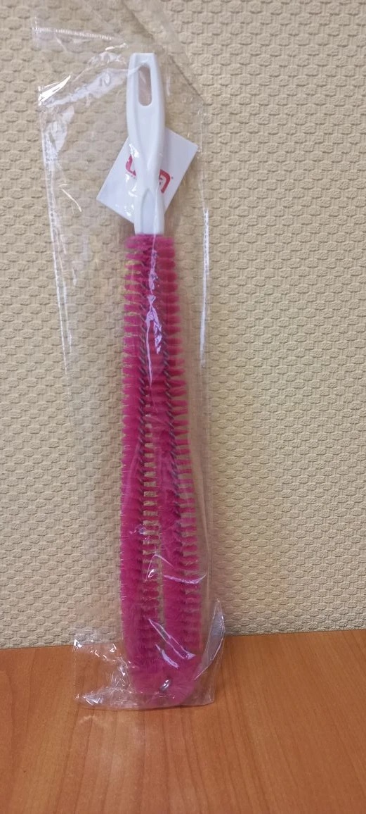 Ершик предназначен для мытья бутылок, банок, термосов и других предметов. Изделие оснащено износостойкой щетиной средней жесткости, выполненной из сложных полимеров и закрепленной на металлическом крученом стержне. Эргономичная рукоятка, изготовленная из полипропилена (пластика), оснащена отверстием для подвешивания.