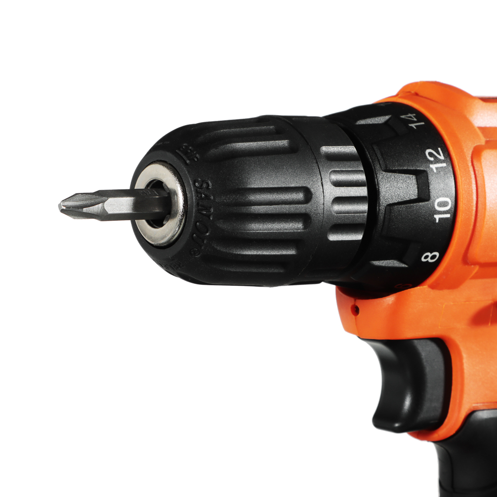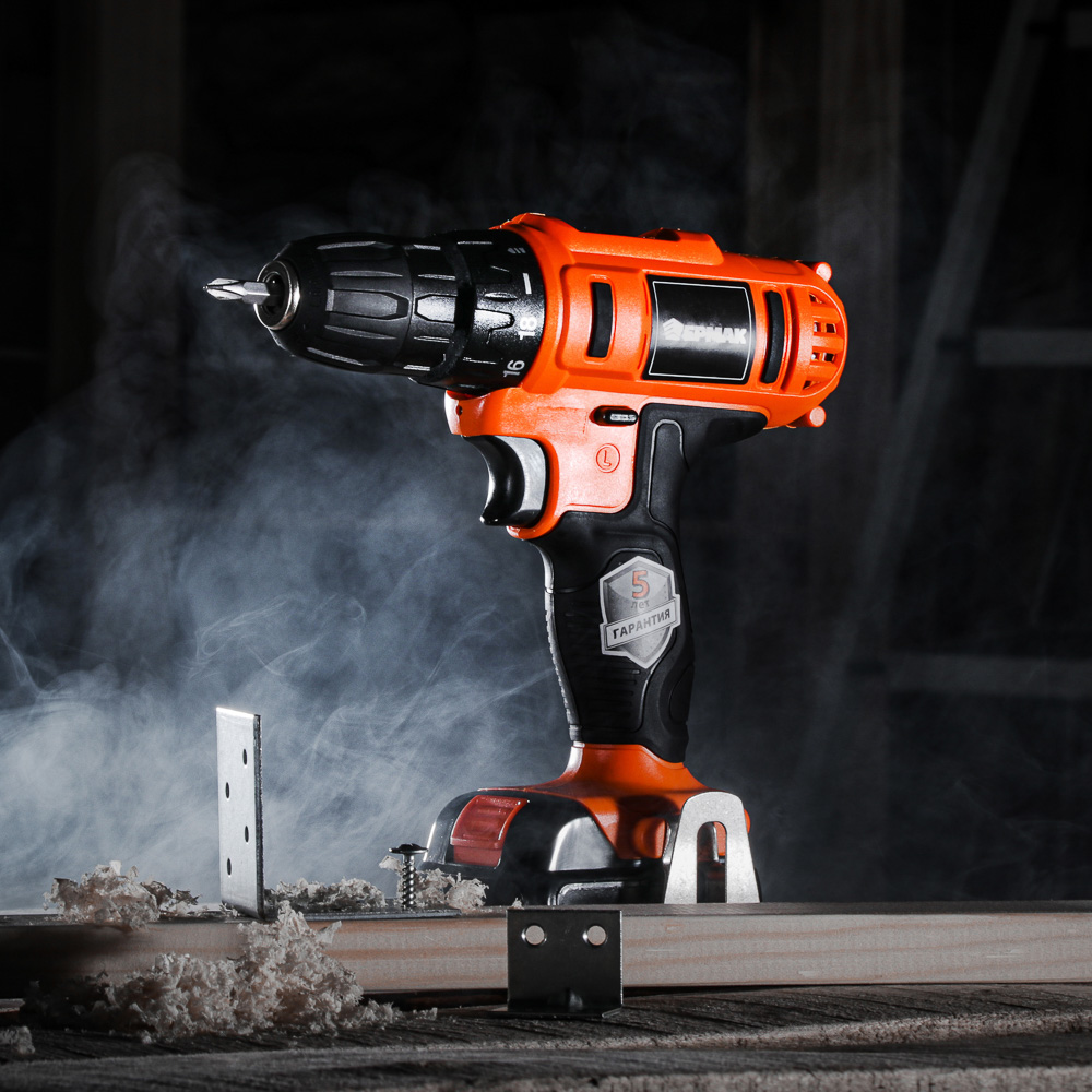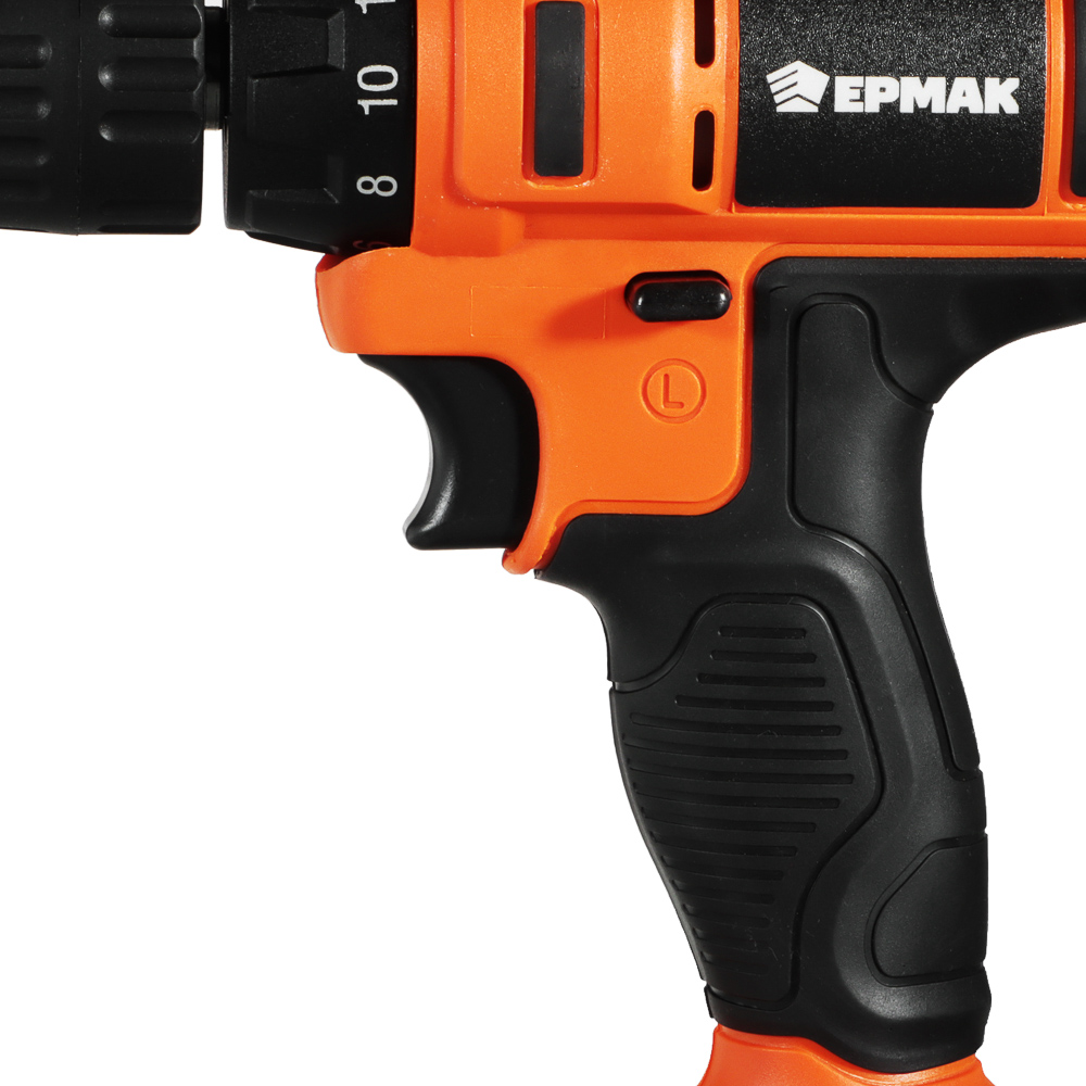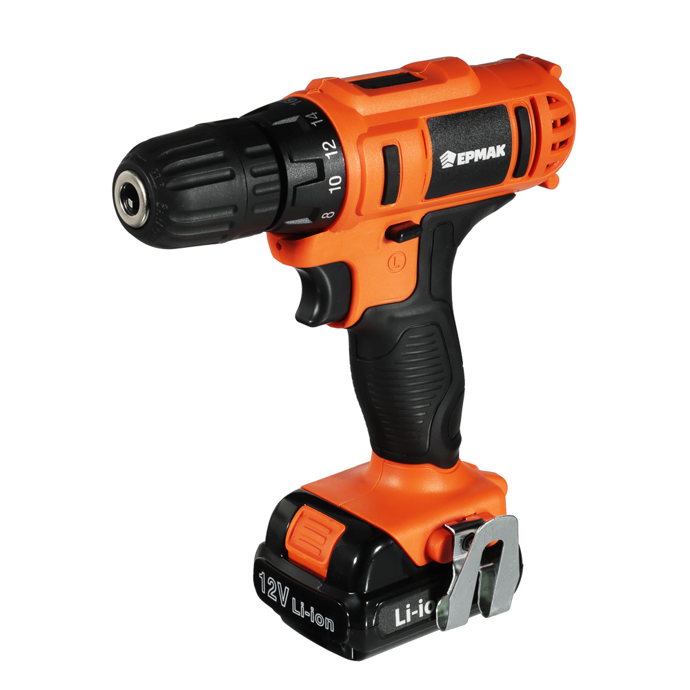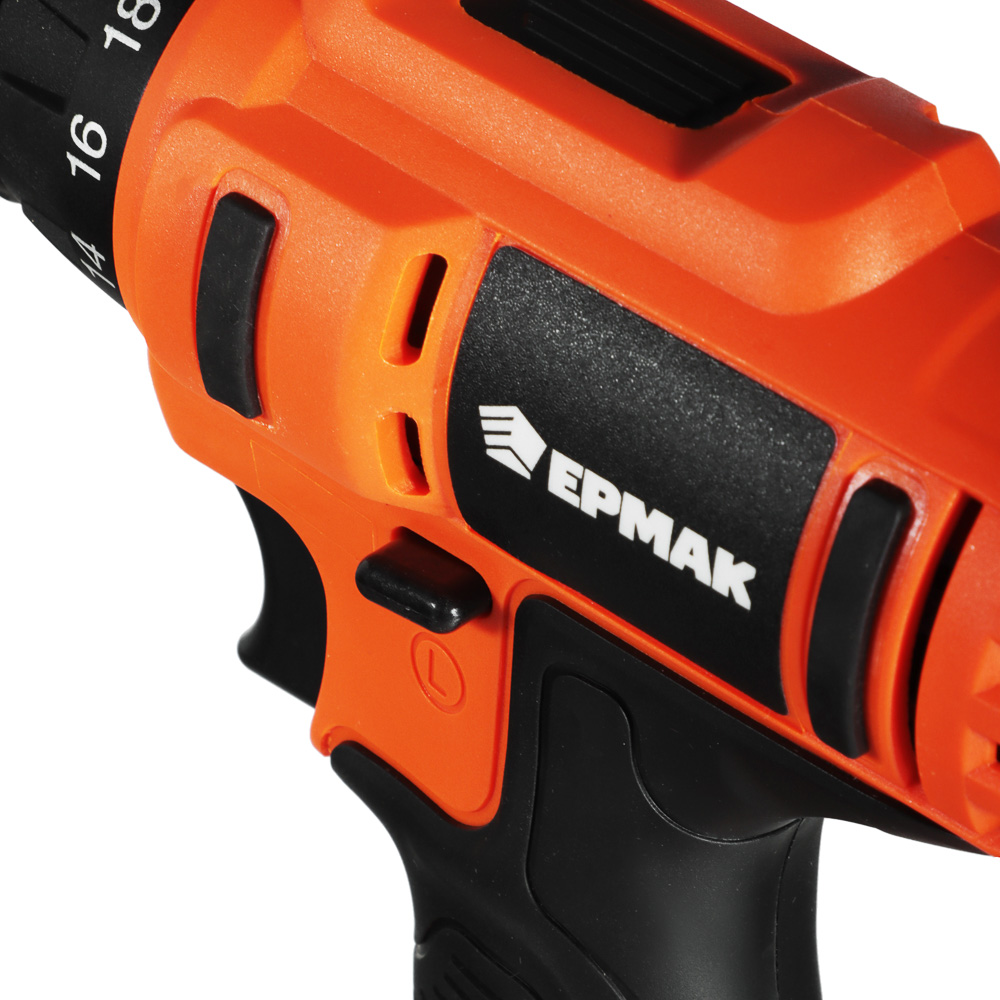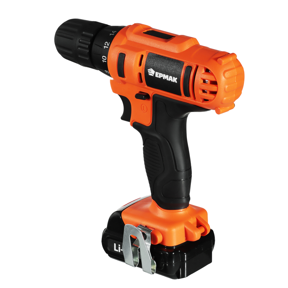 Аккумуляторная дрель-шуруповерт ЕРМАК применяется для сверления отверстий и работ с крепежами в бытовой и в профессиональной сфере. Прибор снабжен литий-ионным аккумулятором емкостью 1.3 Ач с напряжением 12 В. Максимальный крутящий момент составляет 18 Нм при 18+1 ступенях крутящего момента, диаметр патрона — 10 мм. Дрель-шуруповерт подходит для завинчивания и отвинчивания саморезов, болтов, винтов и шурупов, а также затягивания дюбелей и анкеров. Удобство работы обеспечивается благодаря светодиодной подсветке рабочей зоны.Комплектация: Бит-насадка двусторонняя, зарядное устройство.