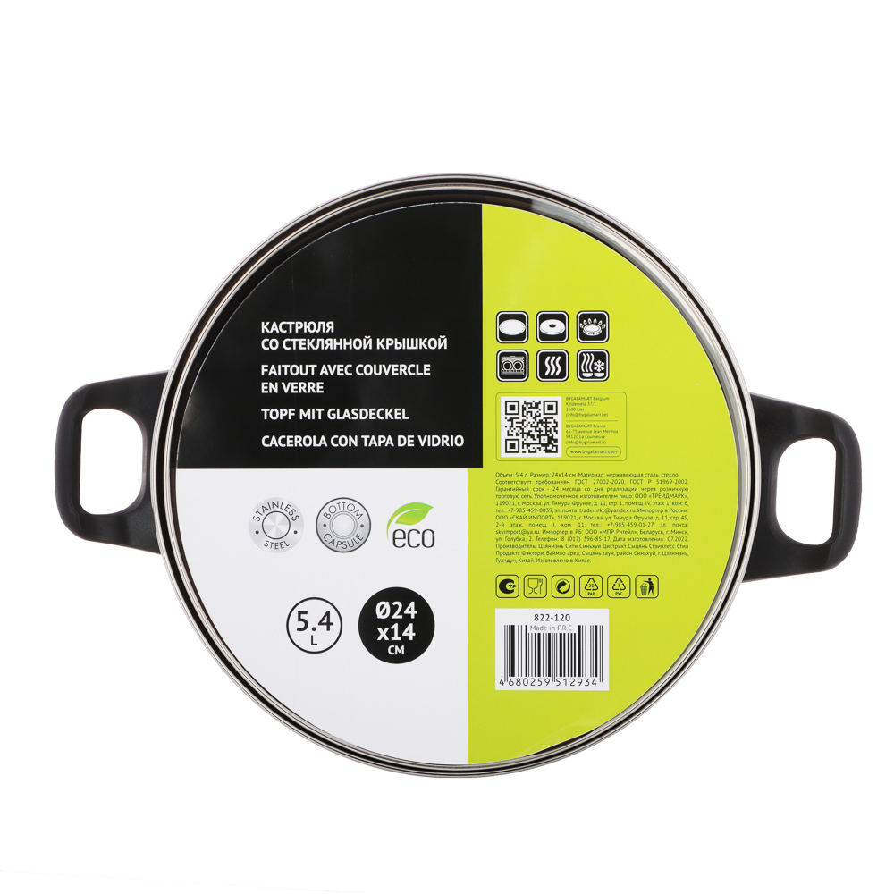 Стрейтон Кастрюля 24х13,5см, 4,9л, со стекл. крышкой