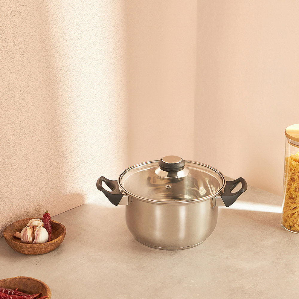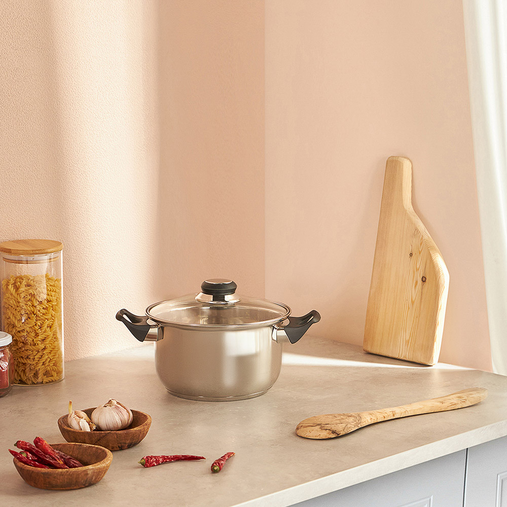 Все еще довольствуетесь приготовлением обедов в старых кастрюлях, где пища медленно варится и пригорает? Обратите внимание на линейку стильной посуды «Стрейтон». Это универсальная посуда из нержавеющей стали, созданная по последним технологиям. Кастрюли оснащены капсульным дном. Вода закипает быстрее. Ингредиенты  не подгорают. Пища готовится равномерно и качественно. Подходит для длительного хранения в холодильнике и тушения блюд в духовке. Кастрюля имеет бакелитовые ручки, которые не нагреваются.Причины купить кастрюлю из нержавеющей стали VETTA серия "Стрейтон":• капсульное дно — быстрее готовит, экономит энергию,• крышка из жаропрочного стекла со стальным ободом и отверстием для отвода пара,• можно ставить в холодильник,• размер 24х13,5 см, объем 4,9 л,• можно мыть в посудомоечных машинах.
