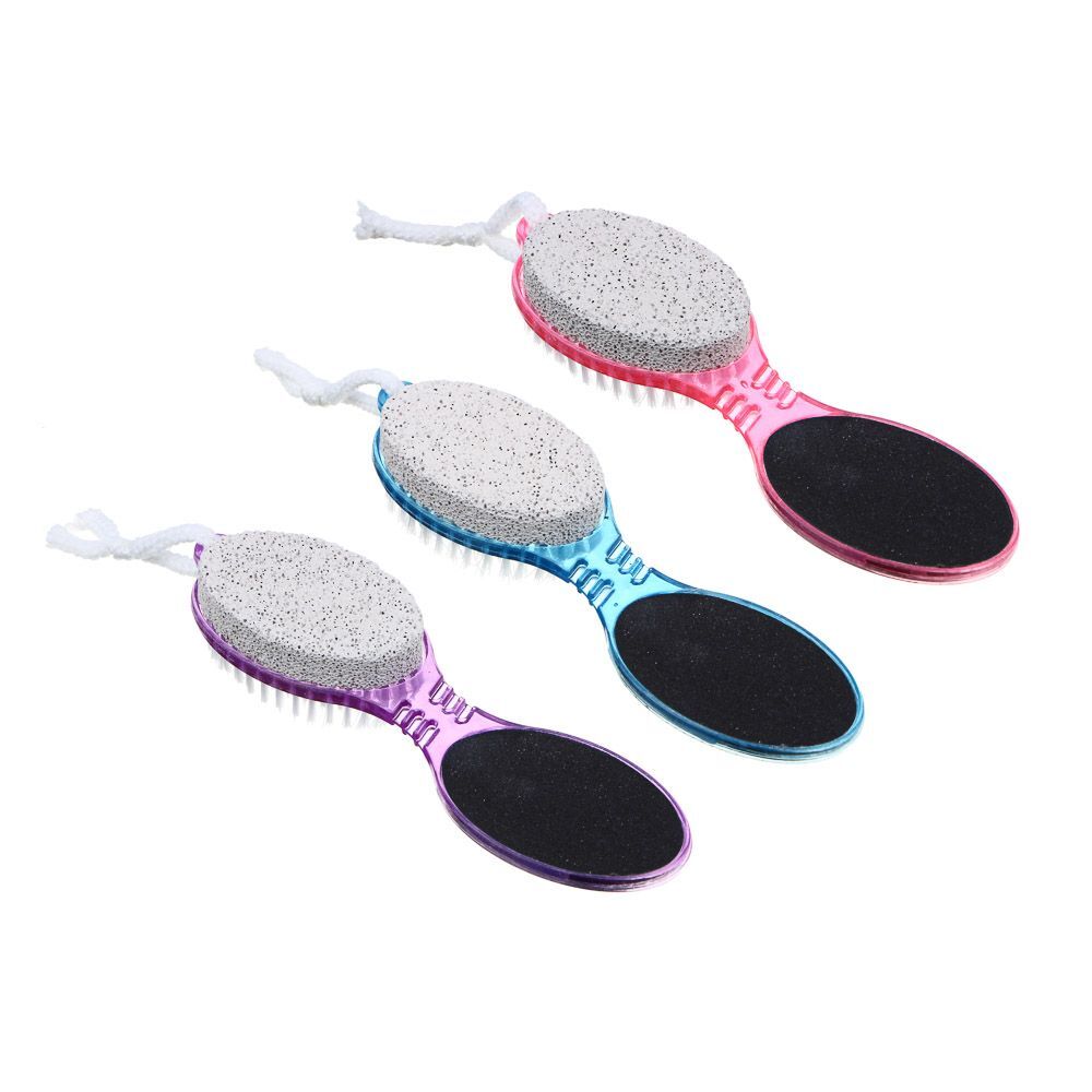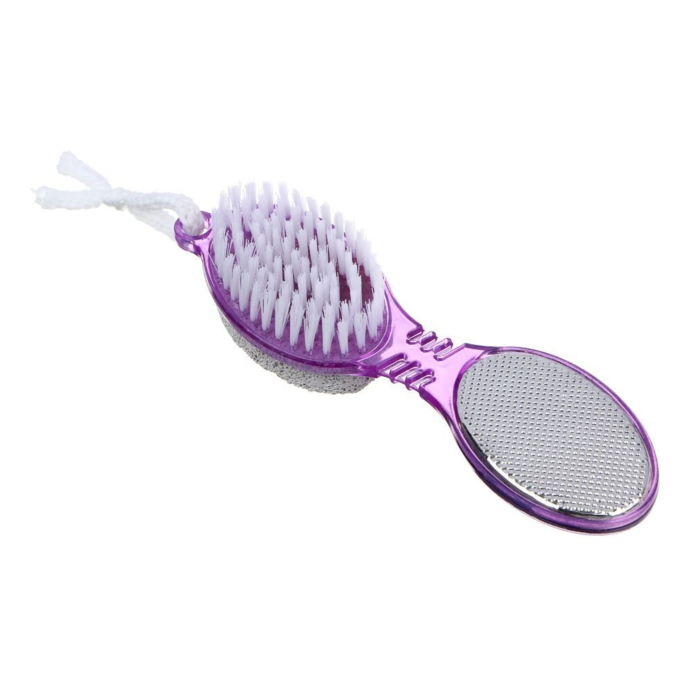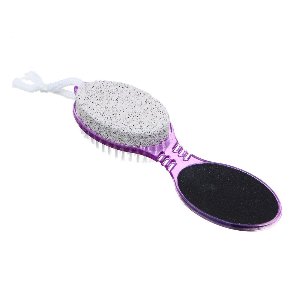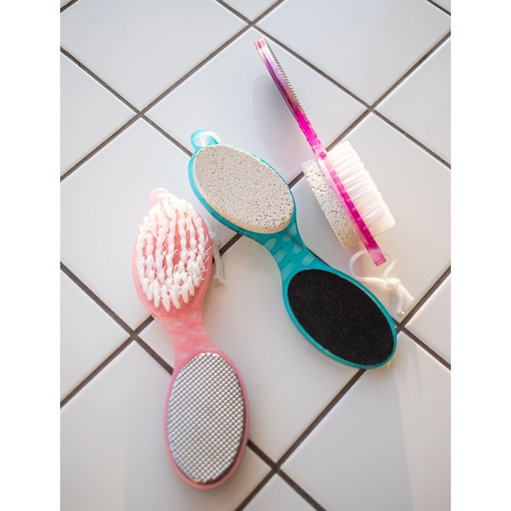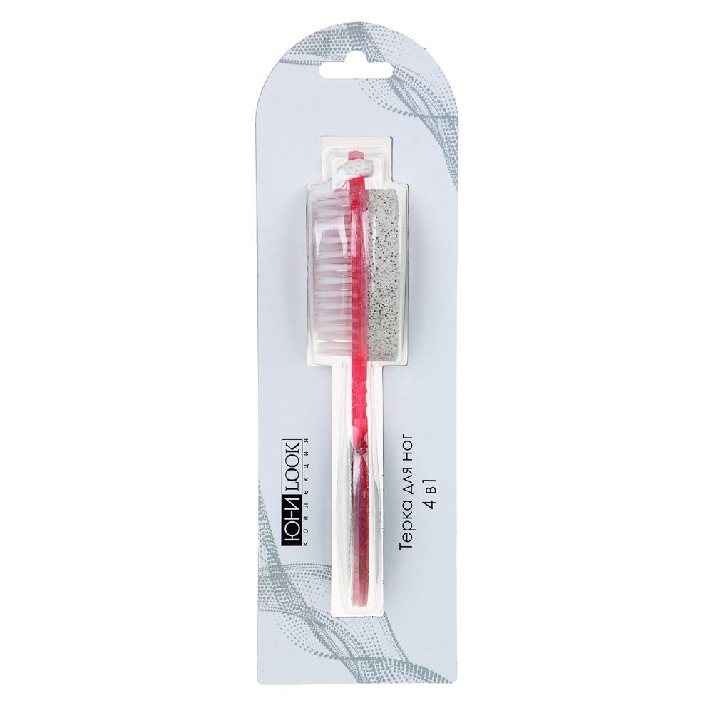 Полный уход за кожей пяток обеспечит терка для ног 4-х сторонняя ЮниLook. Терка имеет 4 поверхности: щетка, пемза, металлическая и наждачная поверхности. Металлическая и наждачная поверхности удаляют самую грубую кожу, уменьшая глубину трещин на ступнях, пемза обладает более мягким воздействием и подходит для частого использования. А щетка поможет очистить ногти и пространство между пальцами. При помощи веревочного подвеса можно разместить терку на крючке.