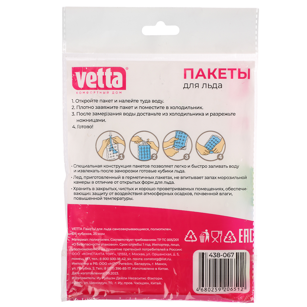 Самозакрывающиеся пакеты для приготовления льда VETTA позволят быстро и легко приготовить ледяные кубики в морозильной камере. Пакеты не пропускают посторонние запахи. Изготовлены из экологически чистого полиэтилена. Очень легко отделяется от льда. Могут быть использованы в косметических целях для замораживания отваров трав. 5 причин купить пакеты для льда VETTA • позволяют приготовить льдинки идеальной формы • не пропускают посторонние запахи • абсолютно экологически безопасна • самозакрываю