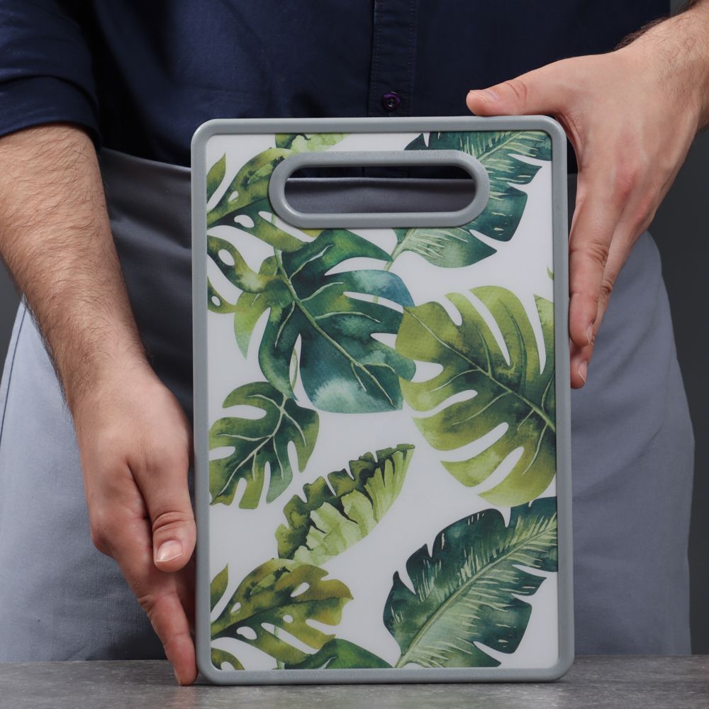 Пластиковая разделочная доска готова выполнять любые кулинарные задания. Шинковка, нарезка, очистка — на разделочной доске из пластика можно делать все и даже больше! Собрались ли вы порезать рыбу или разделать птицу, этот аксессуар всегда придет на выручку. Пластиковая поверхность не хранит ароматы продуктов, не впитывает сок фруктов и не окрашивается в их цвета.