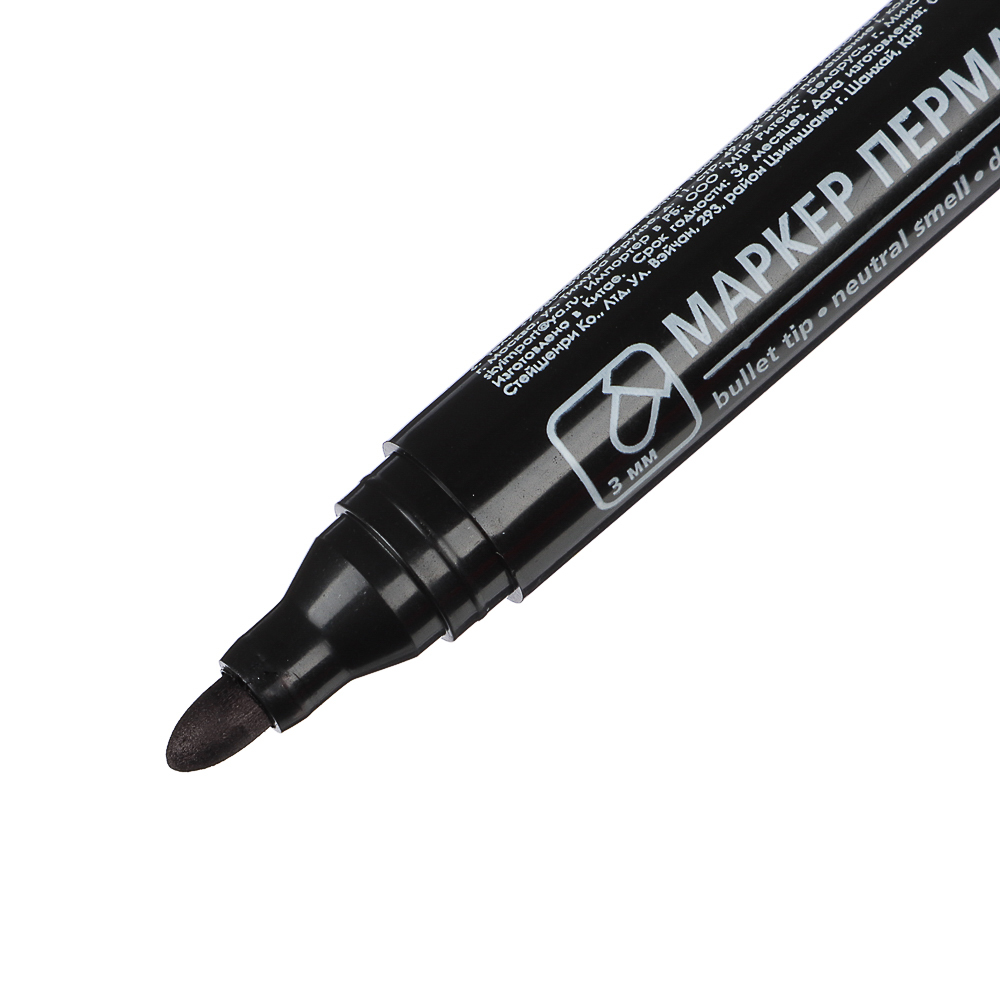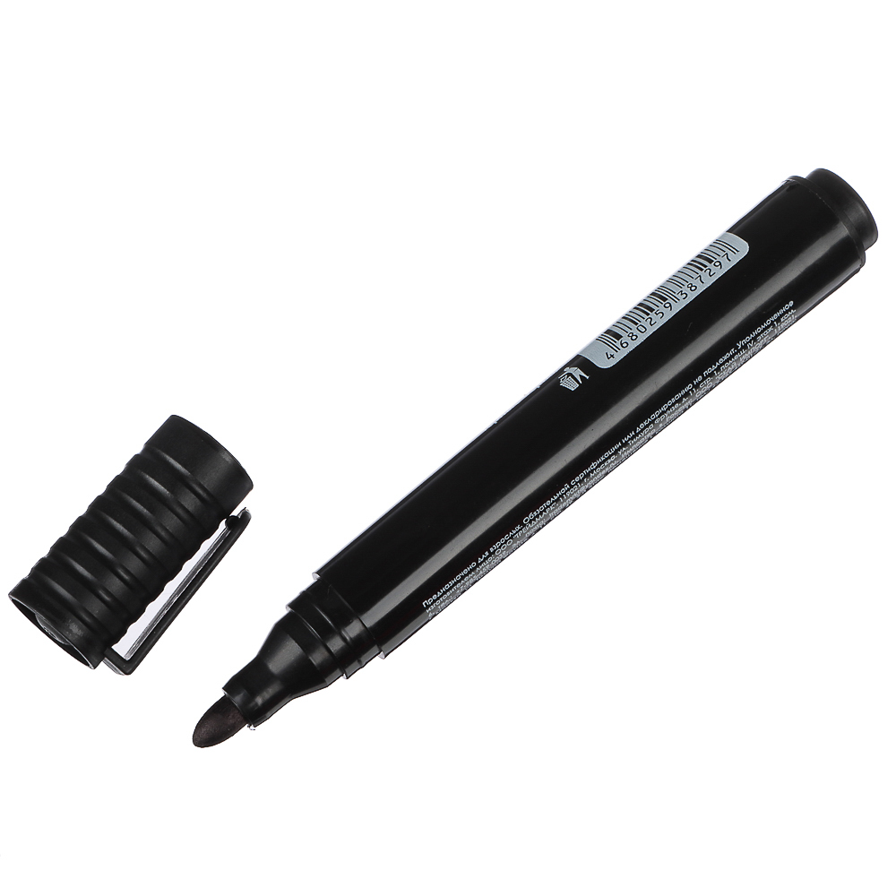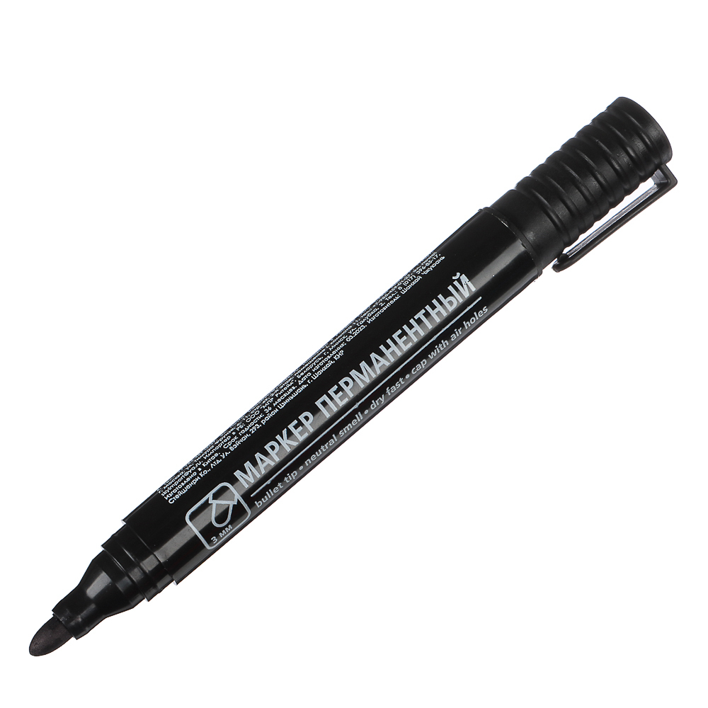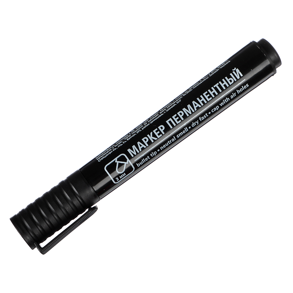 Черный перманентный маркер с пулевидным наконечником подходит для нанесения постоянных надписей на любых поверхностях: бумаге, пластике, металле и камне. Водостойкий, быстро высыхает после нанесения, не размазывается, пишет ярко. Толщина линии – 3 мм. Незаменим для строительства, ремонта, создания чертежей. Оснащен плотным вентилируемым колпачком, не засыхает и не имеет запаха.