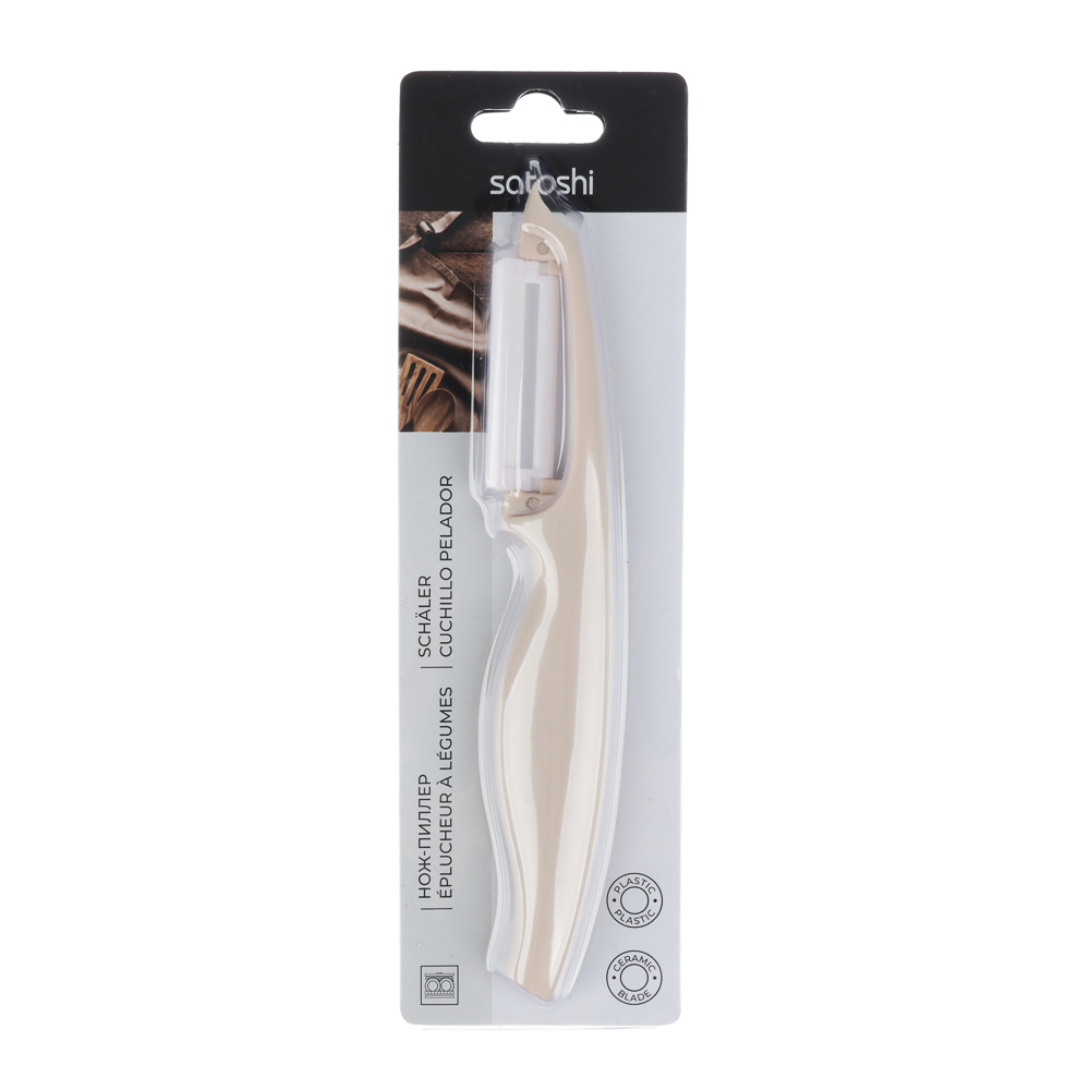 Овощечистка – незаменимая вещь на современной кухне. Овощечистка SATOSHI Дайтани с керамическим вертикальным лезвием имеет эргономичную ручку и удобно лежит в руке. Керамическое лезвие сохраняет остроту в течение длительного времени, а поворотный механизм работы лезвия увеличивает площадь соприкосновения с продуктом, позволяя максимально быстро снять кожицу с овощей и фруктов.