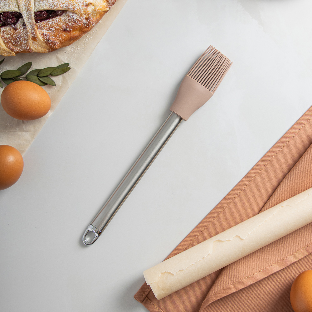 Силиконовая кисточка SATOSHI Алион 26 см - незаменимый помощник на кухне. Она идеально подходит для смазывания сковородок и форм для выпечки, а также для равномерного нанесения масла на продукты при жарке. Благодаря мягкому силикону, кисточка не царапает поверхность и не впитывает запахи. Легкая и удобная в использовании, она станет вашим надежным помощником в приготовлении разнообразных блюд. 6 причин купить кондитерскую кисточку SATOSHI Алион:• силикон не деформируется в следствие нагрева,• щетинки не склеиваются в процессе работы,• не поглощает запахи, долго служит,• не вступает в реакцию с пищевыми продуктами и бытовой химией,• кондитерские смеси и тесто не прилипают к силиконовому изделию,• ручка не скользит, обеспечивая удобны