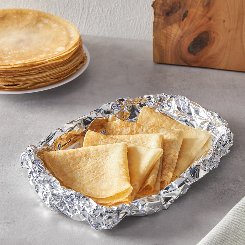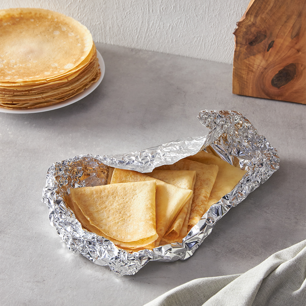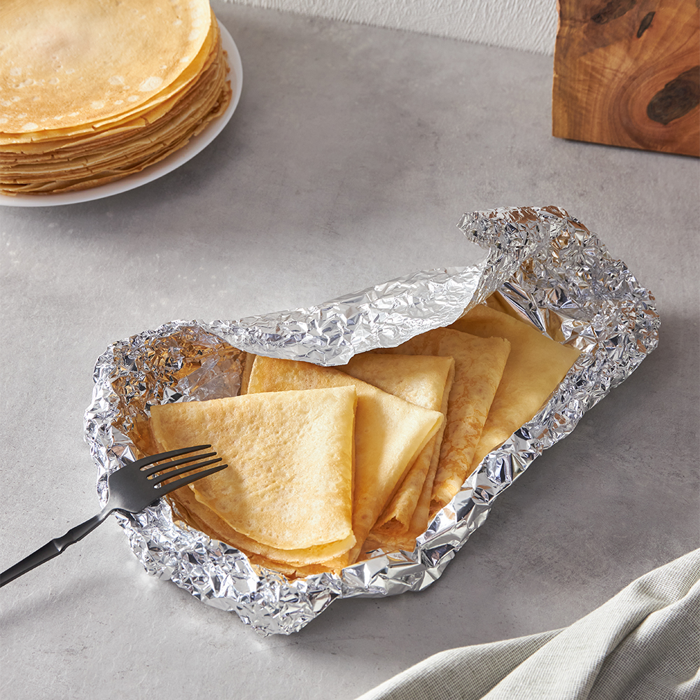 Фольга пищевая Vetta выдержит любые температурные режимы духового шкафа. 9 мкм - это необходимая толщина для приготовления пищи. Фольга не окисляется при нагреве, продукты не пригорают и не прилипают.