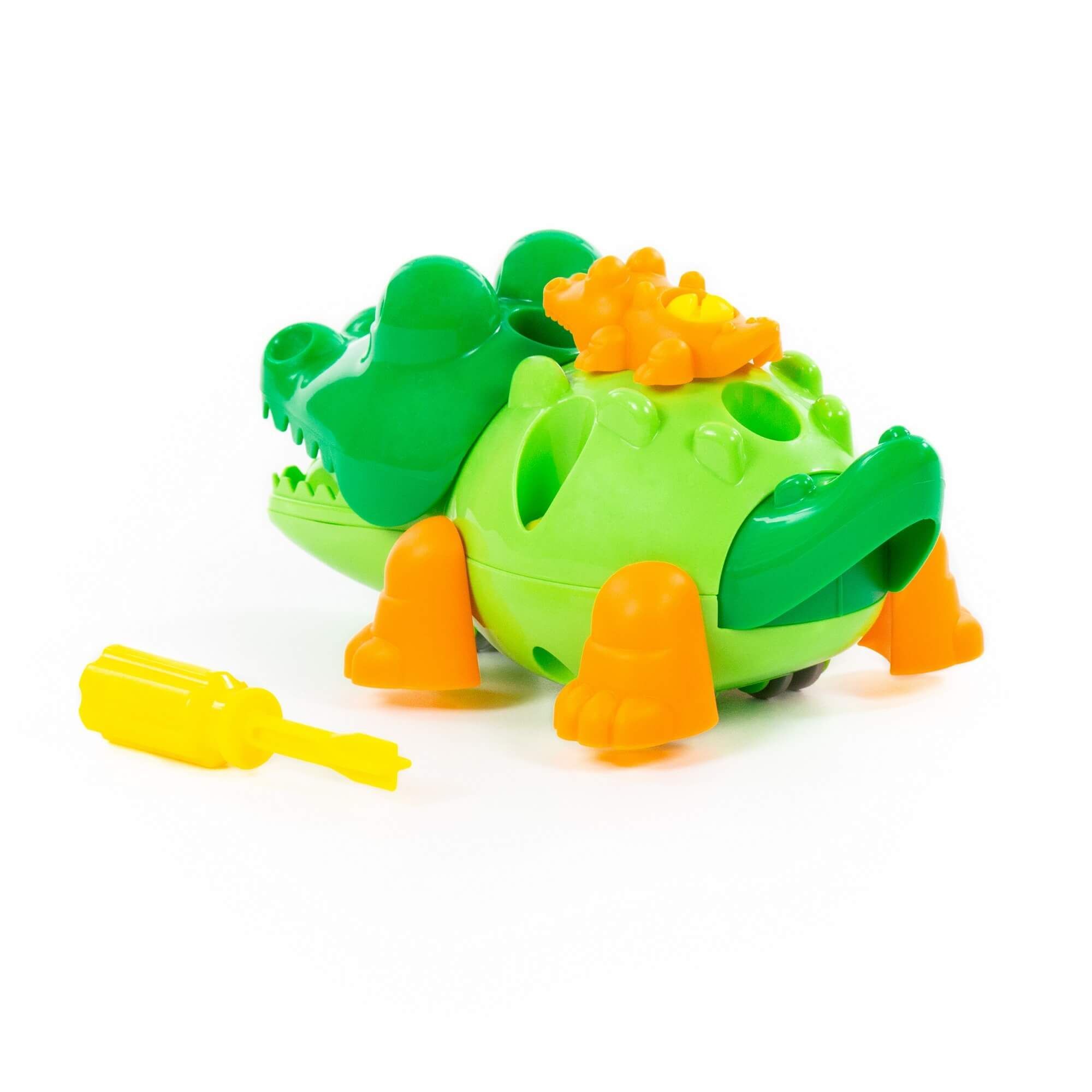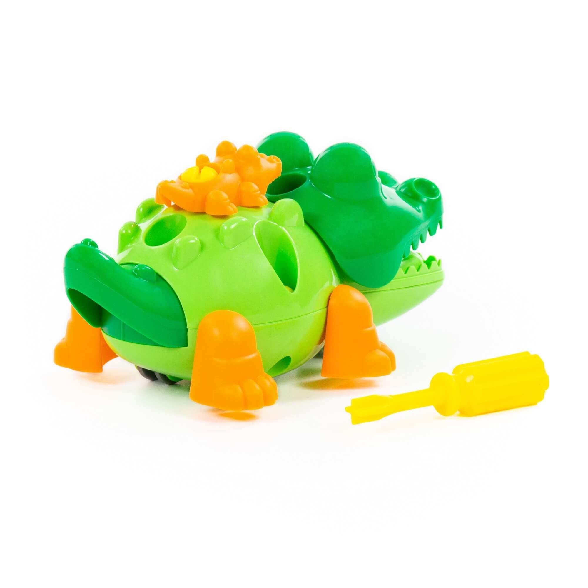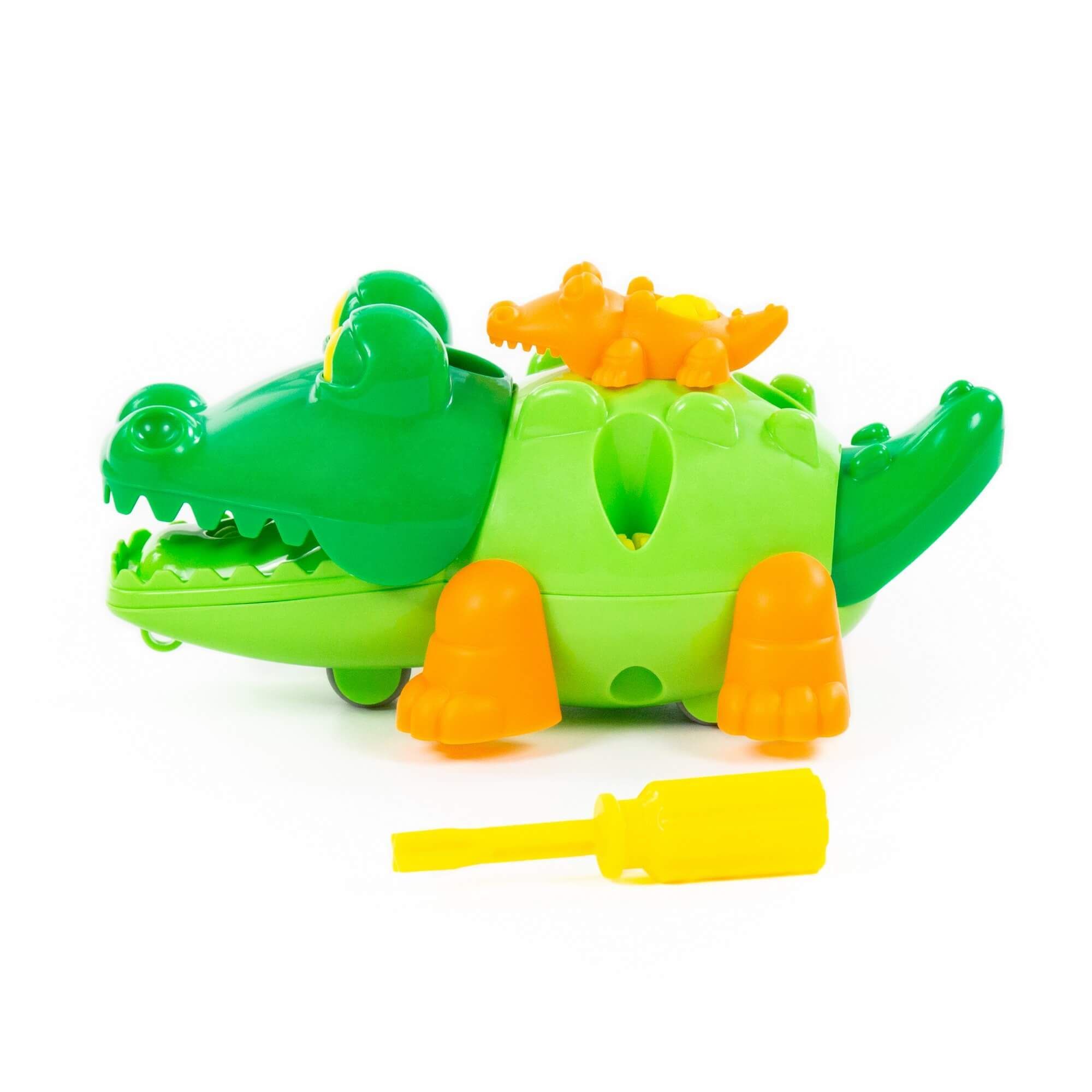С помощью конструктора «Крокодил» ребёнок не просто знакомится с миром животных, а может многократно собирать и разбирать игрушку по деталям. Для этого в наборе предусмотрена специальная отвёртка. Игрушка на колёсах, поэтому ею можно играть как машинкой. Такой конструктор прекрасно подходит для воспитания малыша, так как ребёнок изучает цвета и формы; у него развиваются усидчивость, логическое мышление, мелкая моторика рук и координация движений.