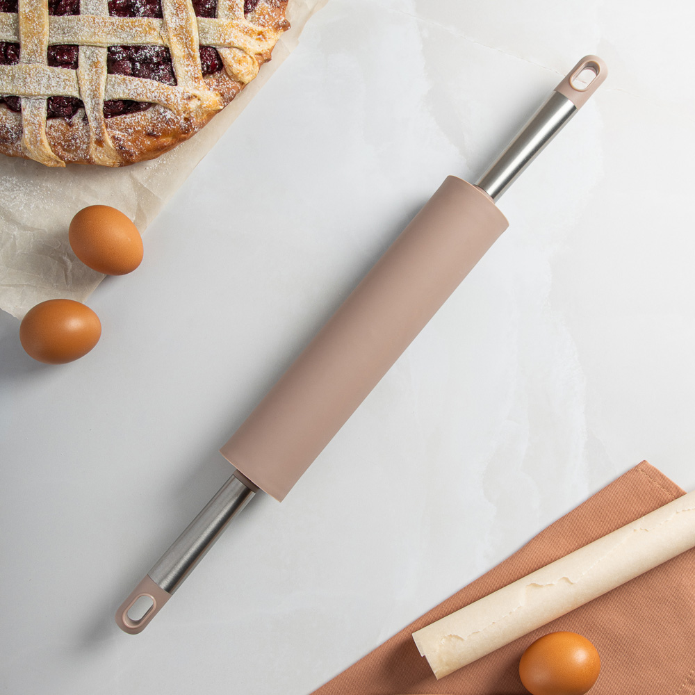 Силиконовая скалка Satoshi Алион подходит для раскатывания мягкого теста и мастики. Продукты совершенно не липнут к кухонному гаджету, позволяя быстрее справляться с поставленными задачами. Преимущества:• безопасный материал не влияет на вкус пищи,• идеально гладкая поверхность без пор, • отсутствует риск появления зазубрин как на дереве,• надежные стальные ручки,• стильный и красочный дизайн для самых требовательных.