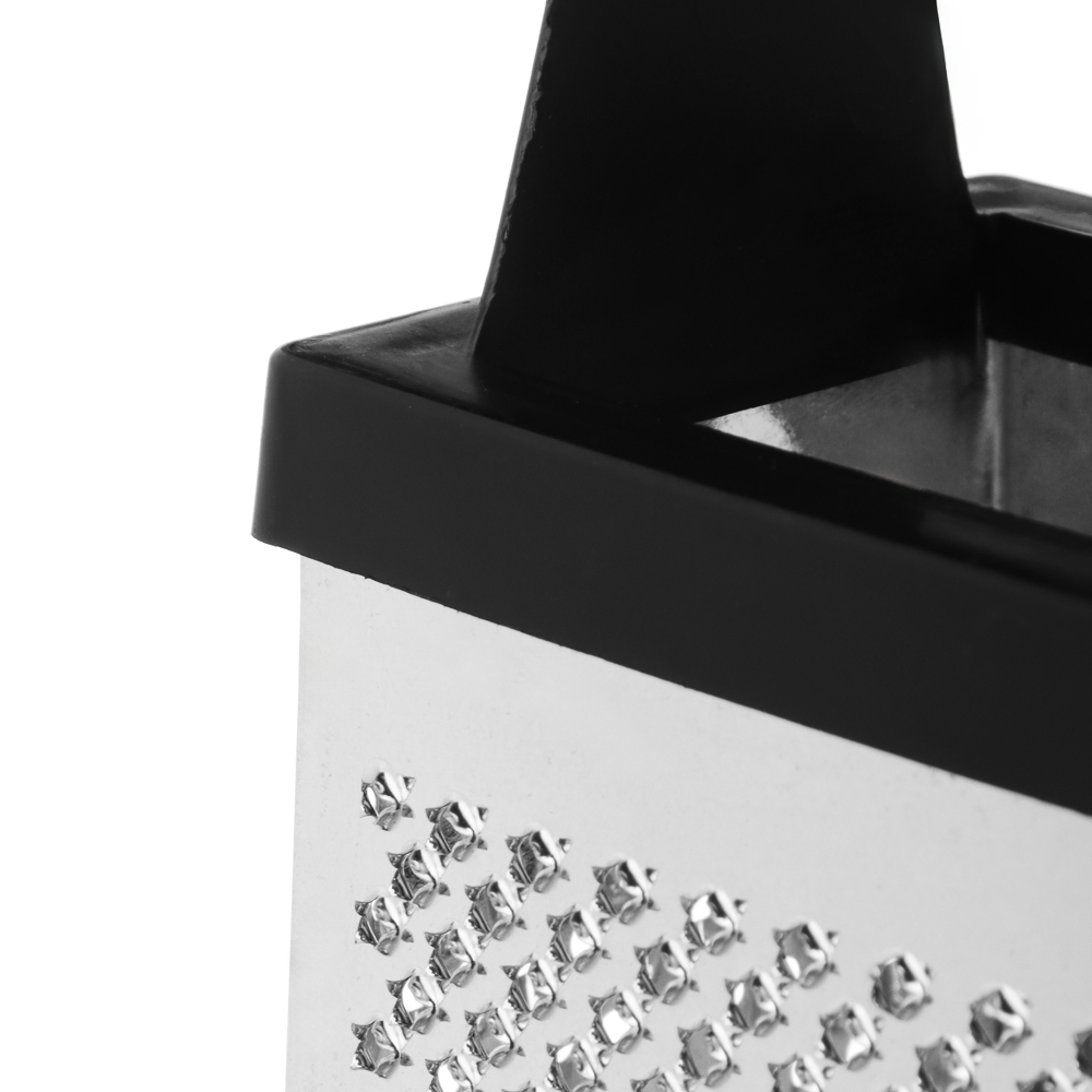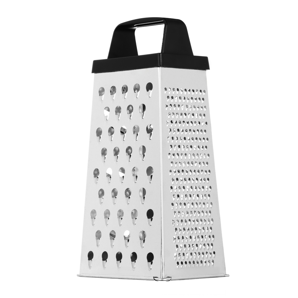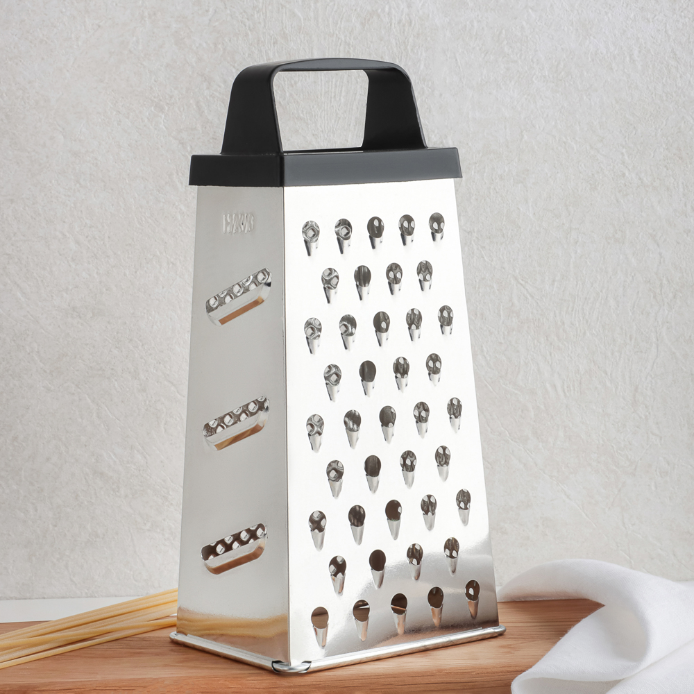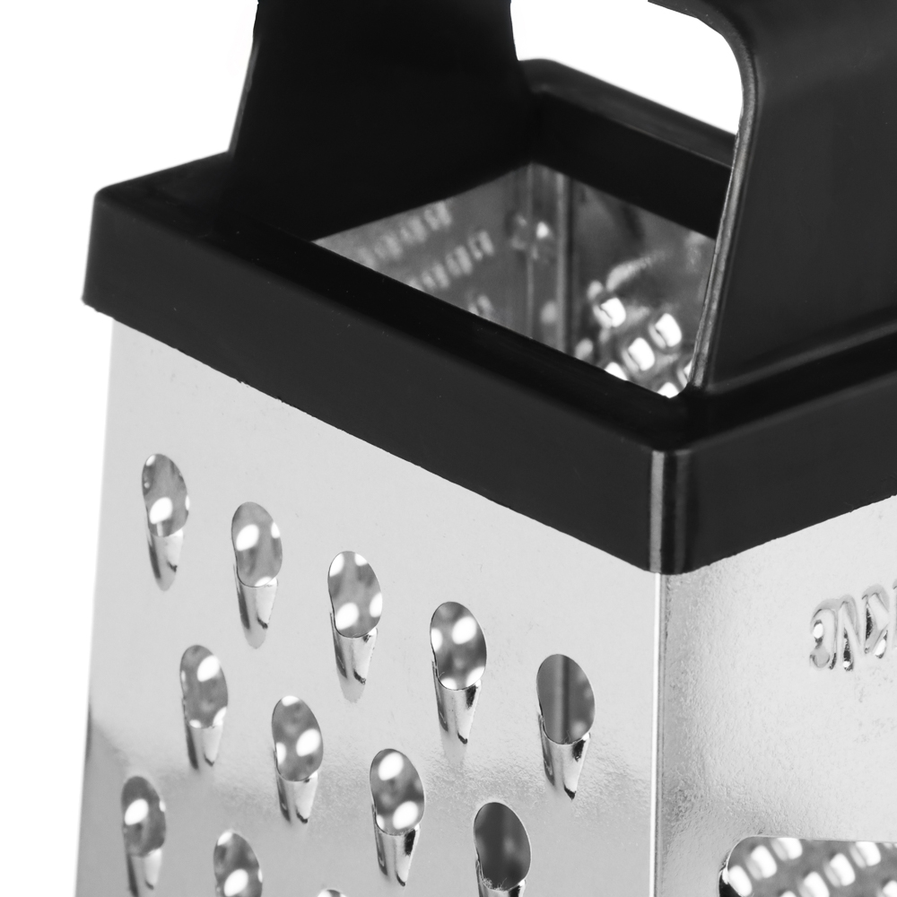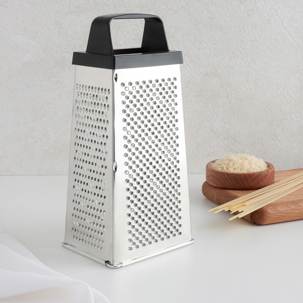 Четырехсторонняя терка 23х11х8,6 см — палочка-выручалочка на каждой кухне. Измельчает любые продукты — от твердого сыра и цедры лимона до варенных овощей для слоеных салатов. Гигиеническая нержавейка не впитывает запахи. Не придает металлический привкус ингредиентам. Не покрывается ржавчиной, не окисляется. Ручка удобно ложится в руке, не скользит.