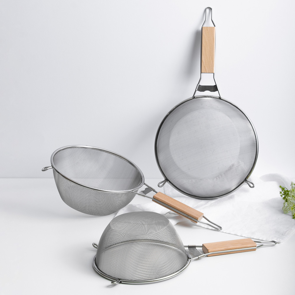 Сито из нержавеющей стали диаметром 21 см с ободом и ручкой - незаменимый помощник на кухне. Оно идеально подходит для просеивания муки, какао, сахарной пудры и других мелких продуктов. Прочный материал обеспечивает долговечность, а удобные ручка и обод делают использование сита максимально комфортным.