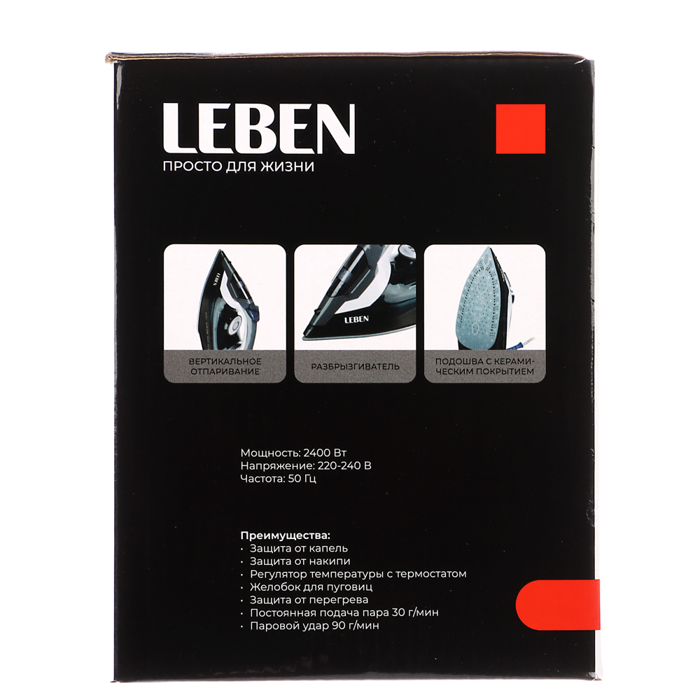 Утюг - незаменимый помощник в каждом доме. Керамическая подошва утюга LEBEN делает его прочными и устойчивыми к повреждениям. Утюг легко скользит, а функция отпаривания помогает справиться даже с самыми глубокими складками. Чтобы глажка белья приносила больше удовольствия, советуем купить этот утюг.