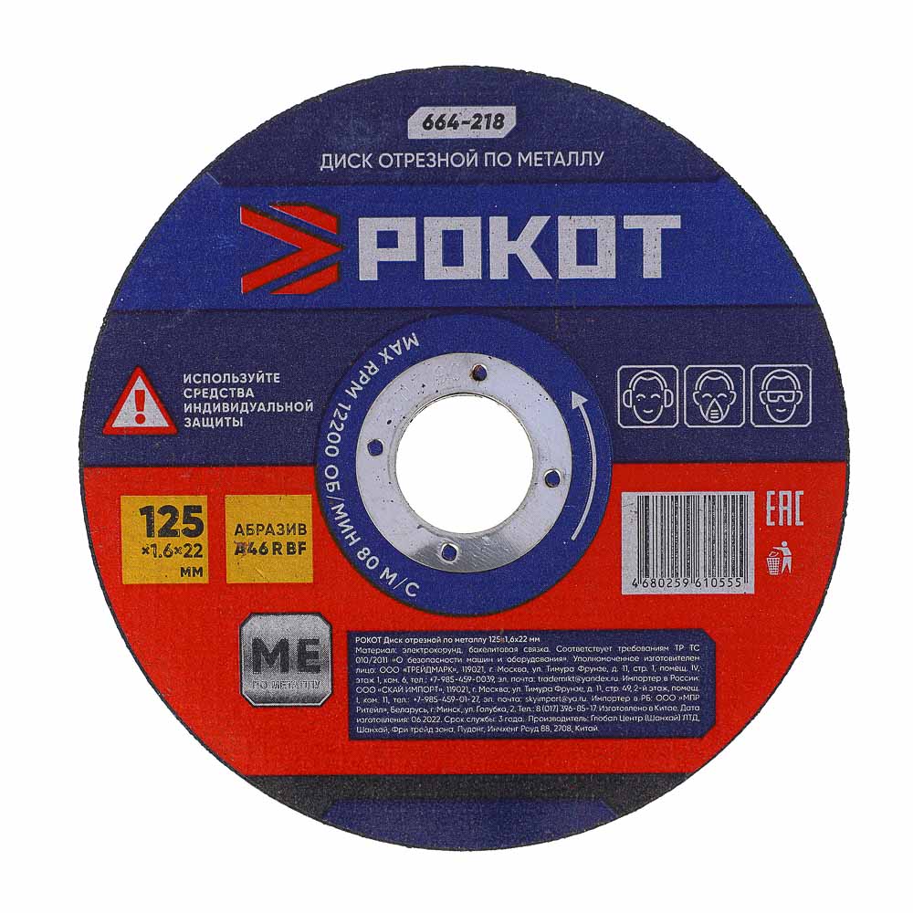 Круг отрезной по металлу РОКОТ 125х1, 6х22 мм применяется совместно с угловыми шлифовальными машинами (болгарками) для работ по металлическим заготовкам. Диск можно раскручивать до 12200 оборотов в минуту.