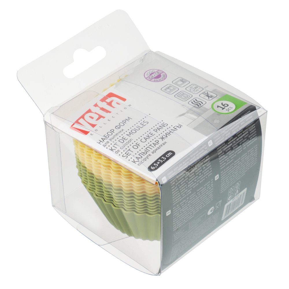 Набор из 16-ти круглых форм размером 6,5х3,3 см из силикона предназначен для выпечки кексов, сырников, маффинов и других видов выпечки в духовом шкафу. Силиконовые формочки выдерживают высокую температуру нагрева, легко моются и идеальны для многоразового использования. Тесто при выпекании не прилипает ко дну и стенкам формочки, поэтому готовые изделия всегда получаются красивыми и аппетитными.
