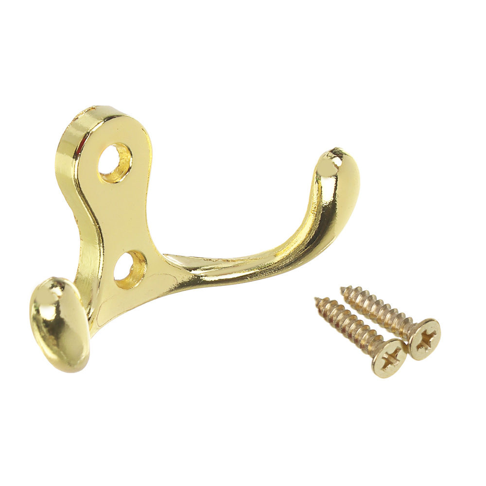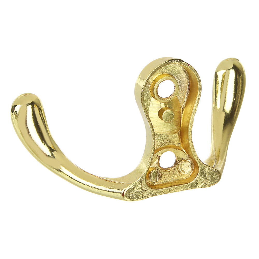 Металлический настенный крючок ЕРМАК 1010 CP – это компактное приспособление для подвешивания различных предметов. Двойной крючок из толстого прочного металла выдерживает высокие нагрузки и может использоваться в прихожей, гардеробной, в гараже или мастерской для верхней одежды, пакетов или сумок, аксессуаров, ключей, зонтов и многого другого. Изделие имеет хромированное защитное покрытие, не подвержено коррозии. В набор включен монтажный комплект из двух саморезов. Доступно 2 цвета: золото, металл.