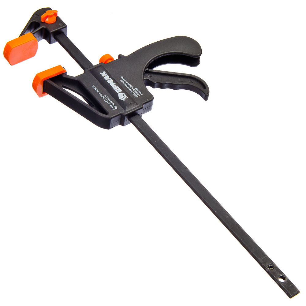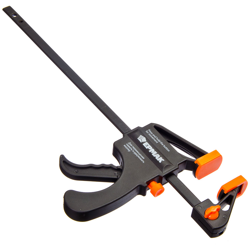 Универсальная F-образная струбцина ЕРМАК применяется в слесарных работах. Инструмент используется для зажатия и фиксации различных деталей и заготовок, а также для склеивания под нажимом. Фиксация и степень нажима регулируются кнопкой. Корпус выполнен из прочного пластика.