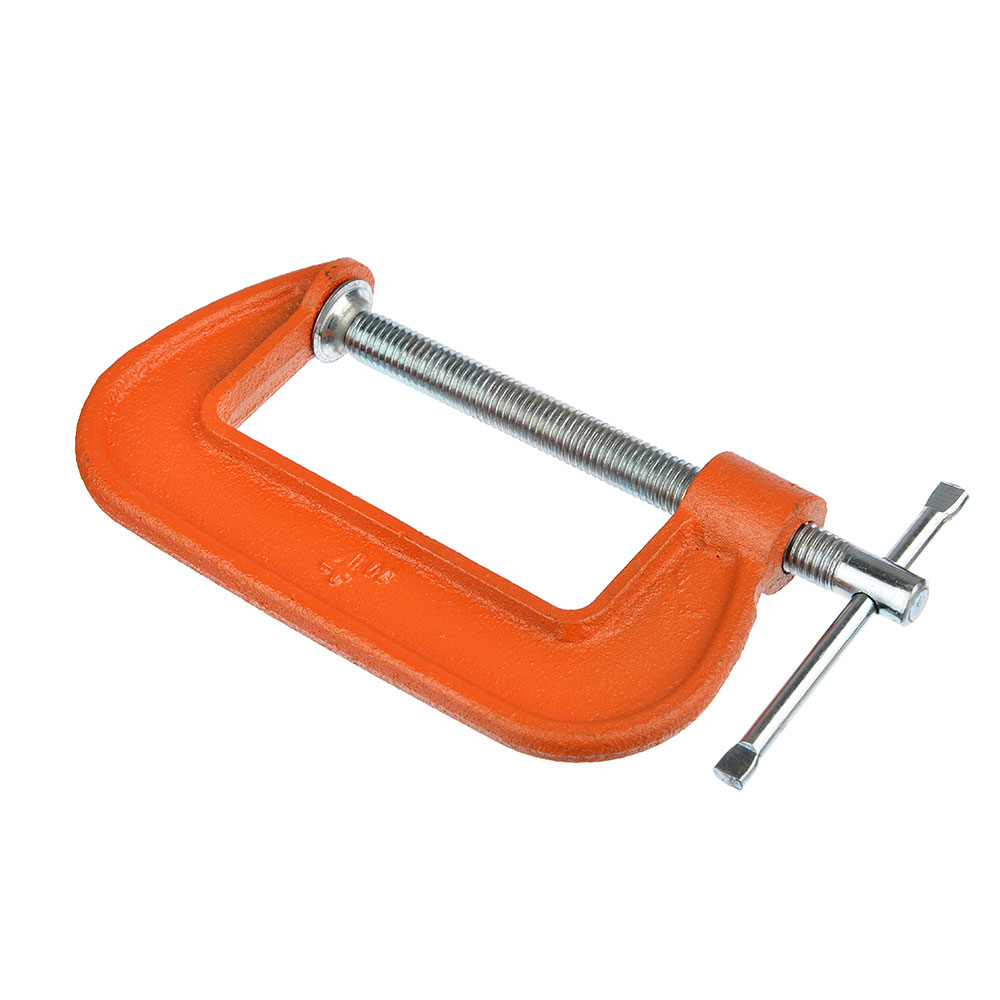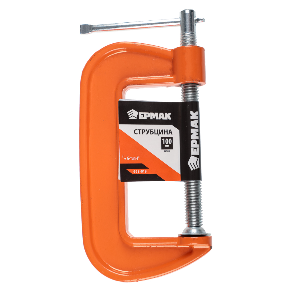Струбцина Ермак, тип G, усиленная, чугун, 4" (100мм), предназначена для фиксации деталей при выполнении столярных и ремонтных работ. Инструменты такого типа часто применяются при обработке металлических заготовок. Максимальный диапазон зажима — 100 мм. Для защиты поверхности деревянных деталей от повреждения рекомендуется использовать накладки или подкладывать под губки мягкие бруски.ОсобенностиОснова конструкции — усиленная, чугунная рама.Для прижима используется винтовой механизм с шарнирной, цельнометаллической опорой.Надежная фиксация. Отсутствует необходимость в периодическом поджатии деталей.