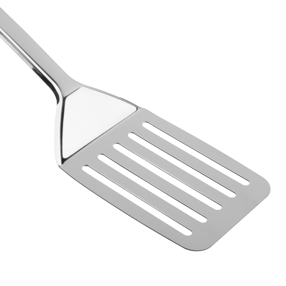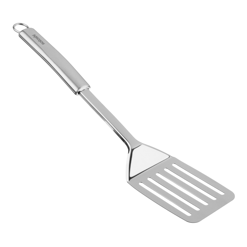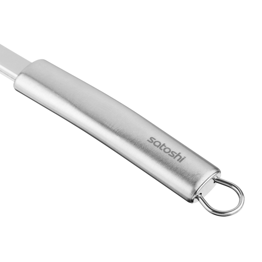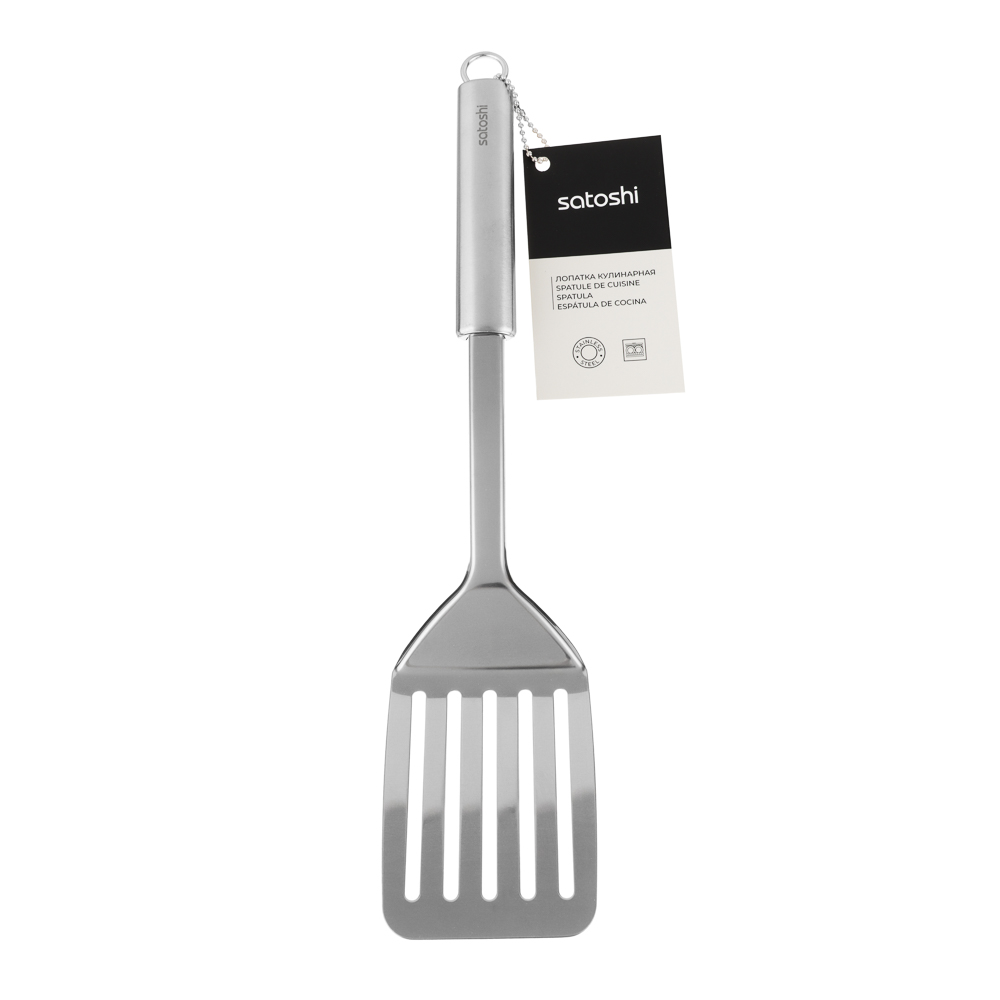 Широкая кулинарная лопатка SATOSHI Альфа из нержавеющей стали со специальными прорезями. Удобная ручка обеспечивает- комфорт при использовании. Нержавеющая сталь не боится температурного шока и не впитывает запахи, инструмент легко мыть вручную или в посудомоечной машине. Эргономичная ручка посуды обеспечит удобный хват, предотвращая выскальзывание из рук.