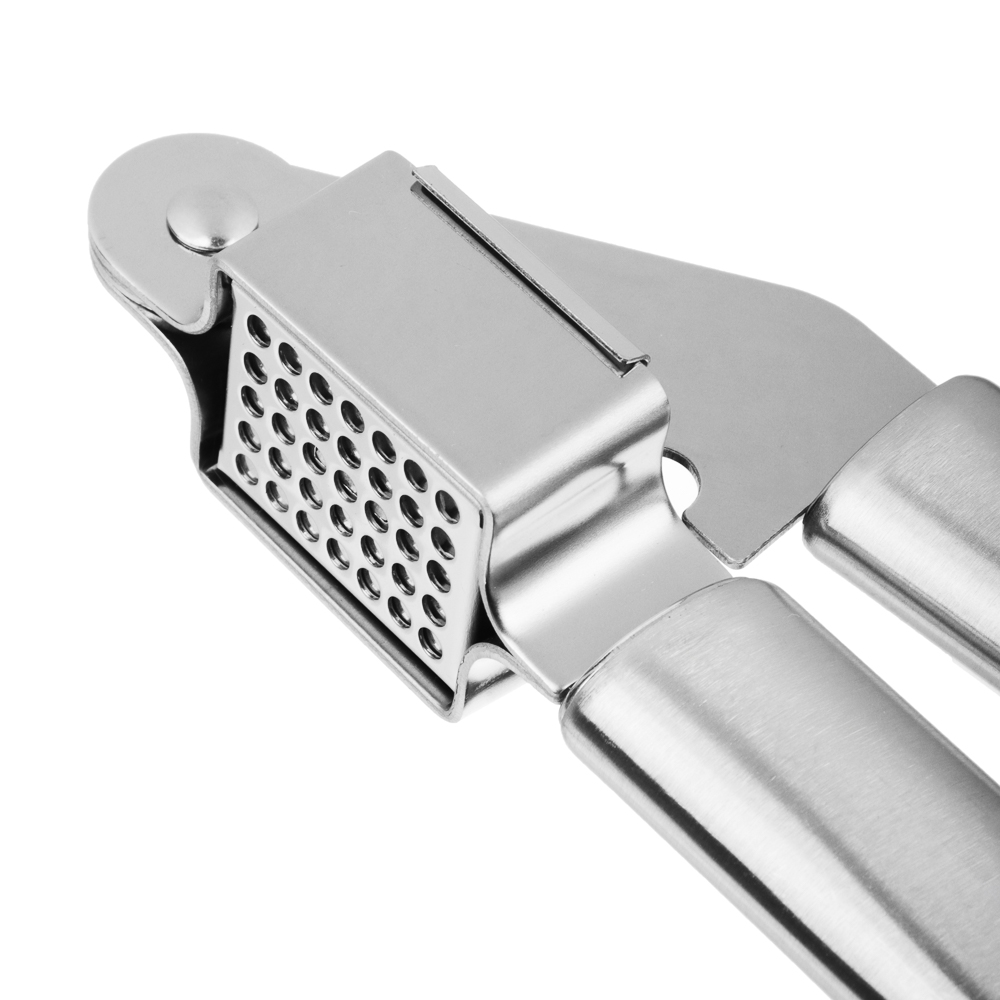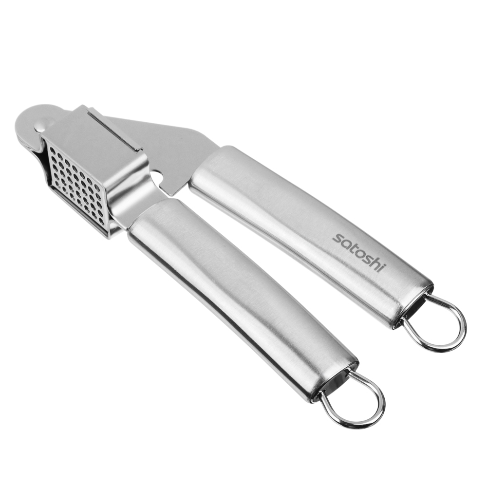 Пресс для чеснока SATOSHI Альфа – лучший помощник каждой хозяйки. Изделие выполнено из высококачественной нержавеющей стали, устойчивой к сокам продуктов. Благодаря простой и надежной конструкции прибор позволяет без особых усилий измельчить дольки чеснока без остатка. После использования отверстия легко прочищаются.