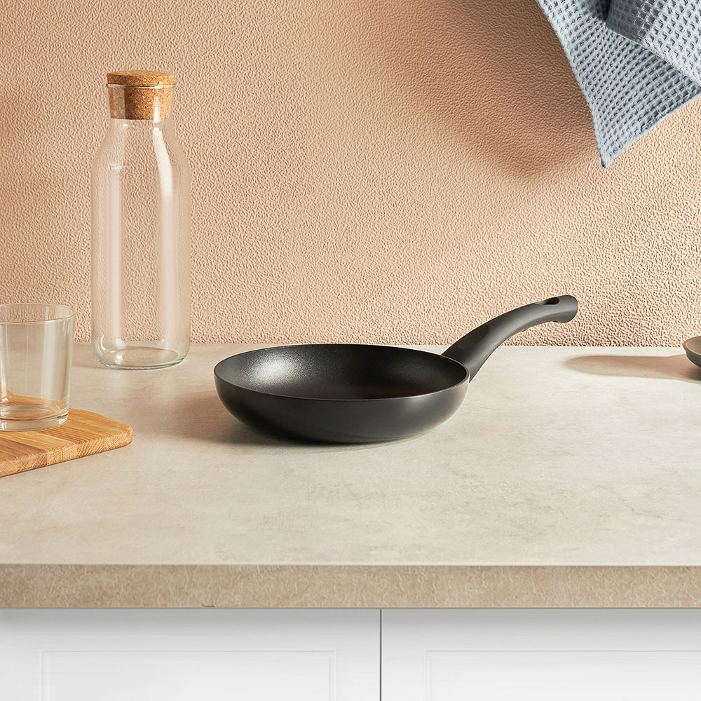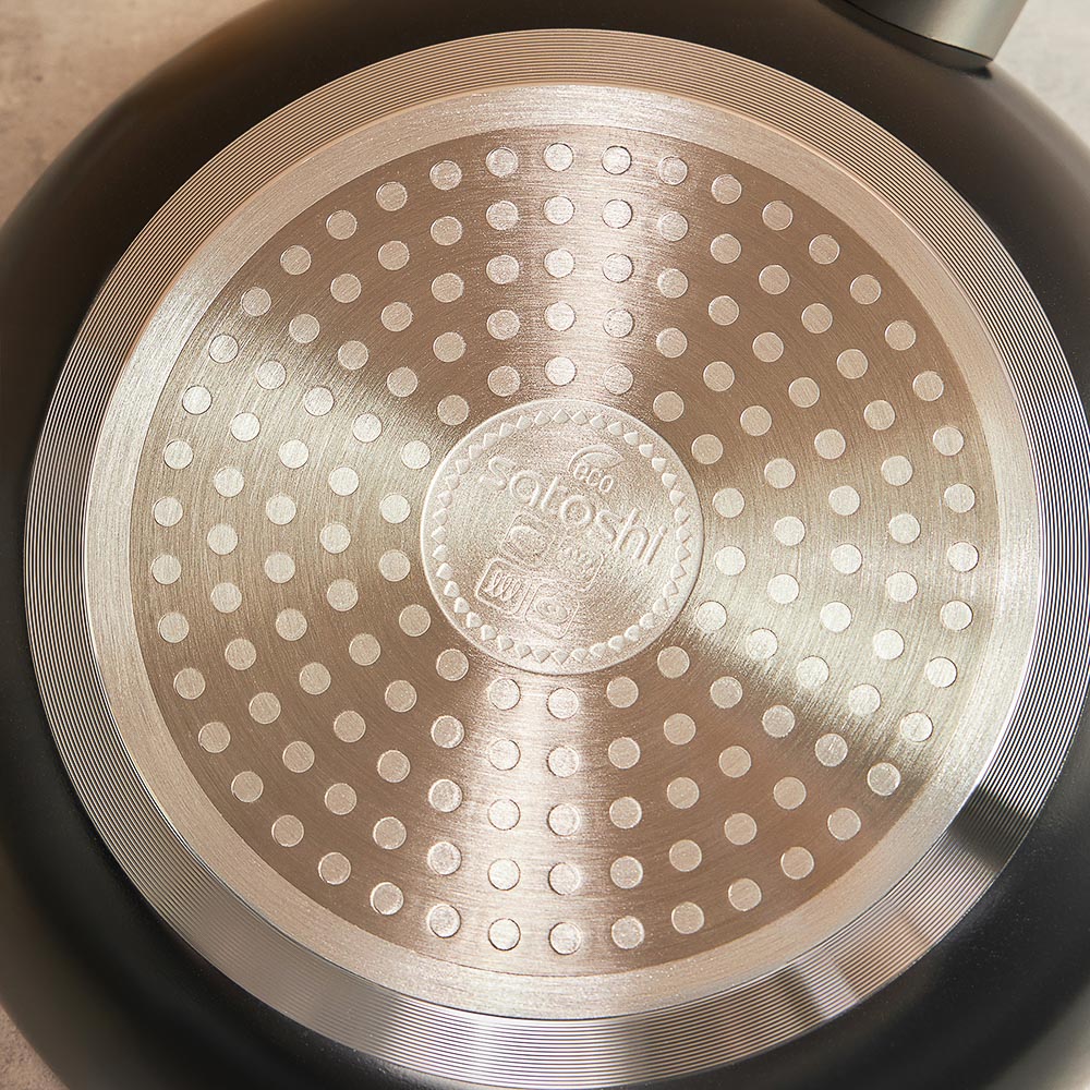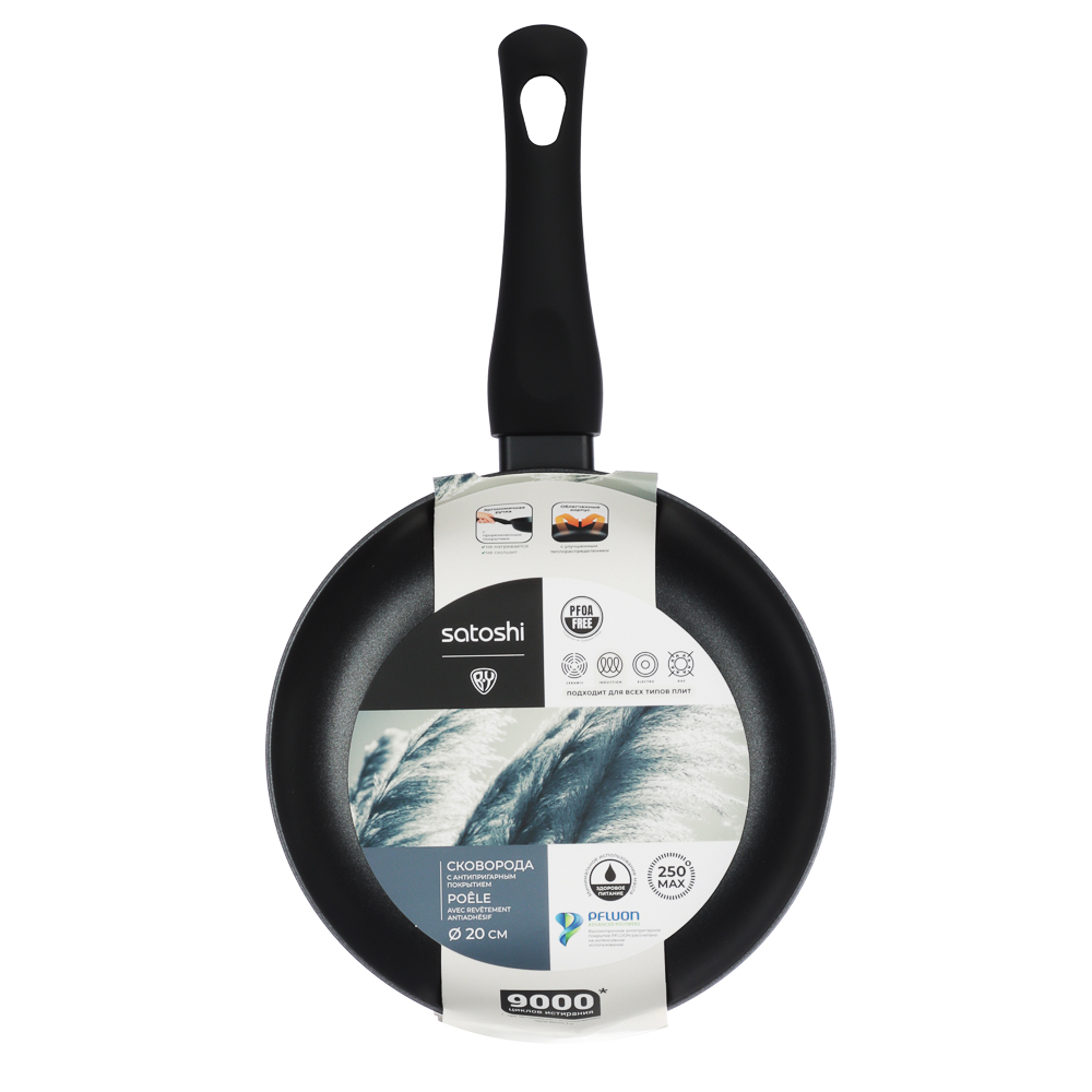 Сковорода SATOSHI Графит диаметром 20 см — это стильное и практичное решение для повседневного приготовления. Выполненная в элегантном черном цвете, она станет прекрасным дополнением к любой кухне. Изготовленная из штампованного алюминия, сковорода быстро и равномерно прогревается, обеспечивая отличные результаты при готовке на всех видах плит, включая индукционные. Антипригарное покрытие позволяет готовить без масла, делая блюда полезнее, а возможность мытья в посудомоечной машине сэкономит ваше время. Эргономичная ручка с покрытием soft-touch не нагревается и не скользит, обеспечивая комфортное использование каждый день.
