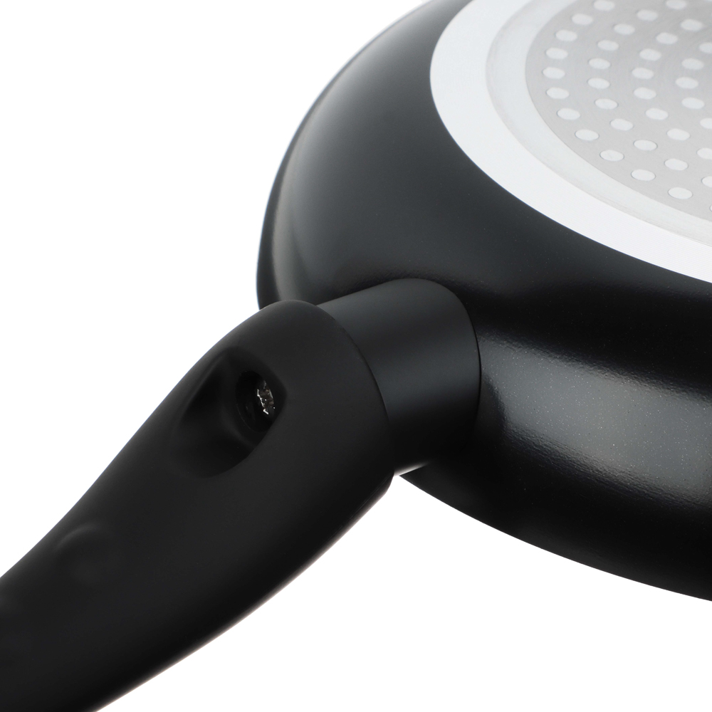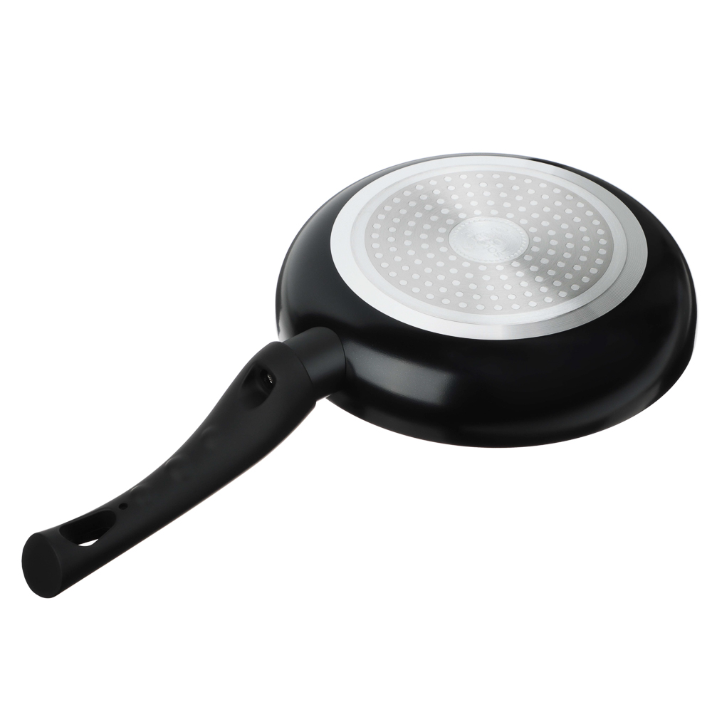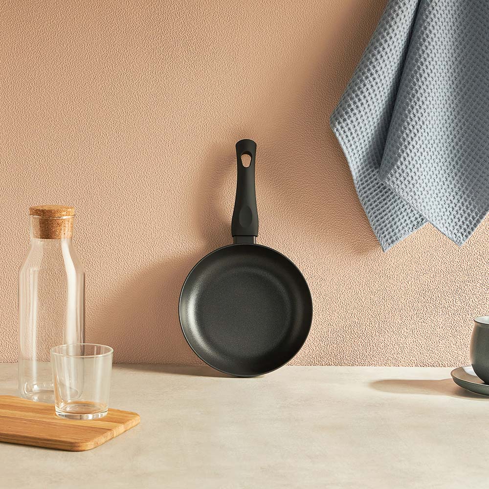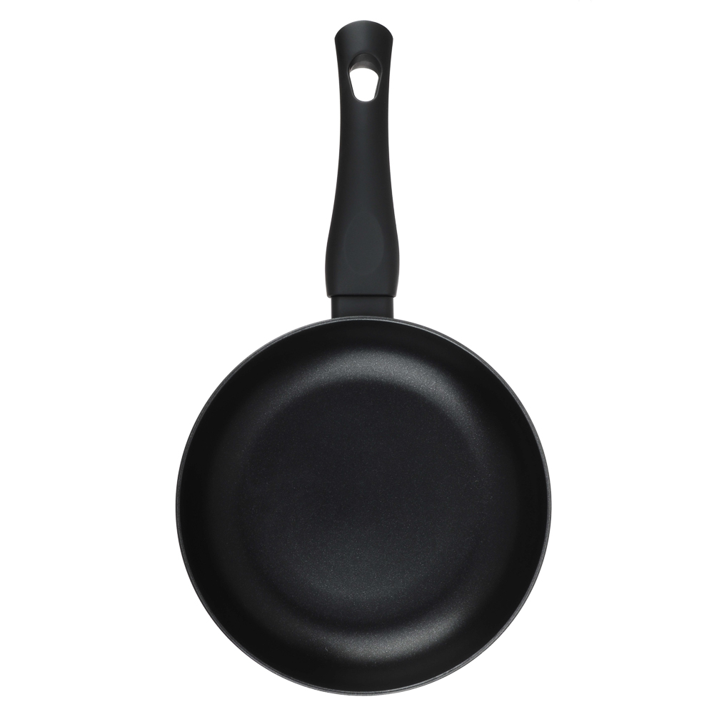 Сковорода SATOSHI Графит диаметром 20 см — это стильное и практичное решение для повседневного приготовления. Выполненная в элегантном черном цвете, она станет прекрасным дополнением к любой кухне. Изготовленная из штампованного алюминия, сковорода быстро и равномерно прогревается, обеспечивая отличные результаты при готовке на всех видах плит, включая индукционные. Антипригарное покрытие позволяет готовить без масла, делая блюда полезнее, а возможность мытья в посудомоечной машине сэкономит ваше время. Эргономичная ручка с покрытием soft-touch не нагревается и не скользит, обеспечивая комфортное использование каждый день.