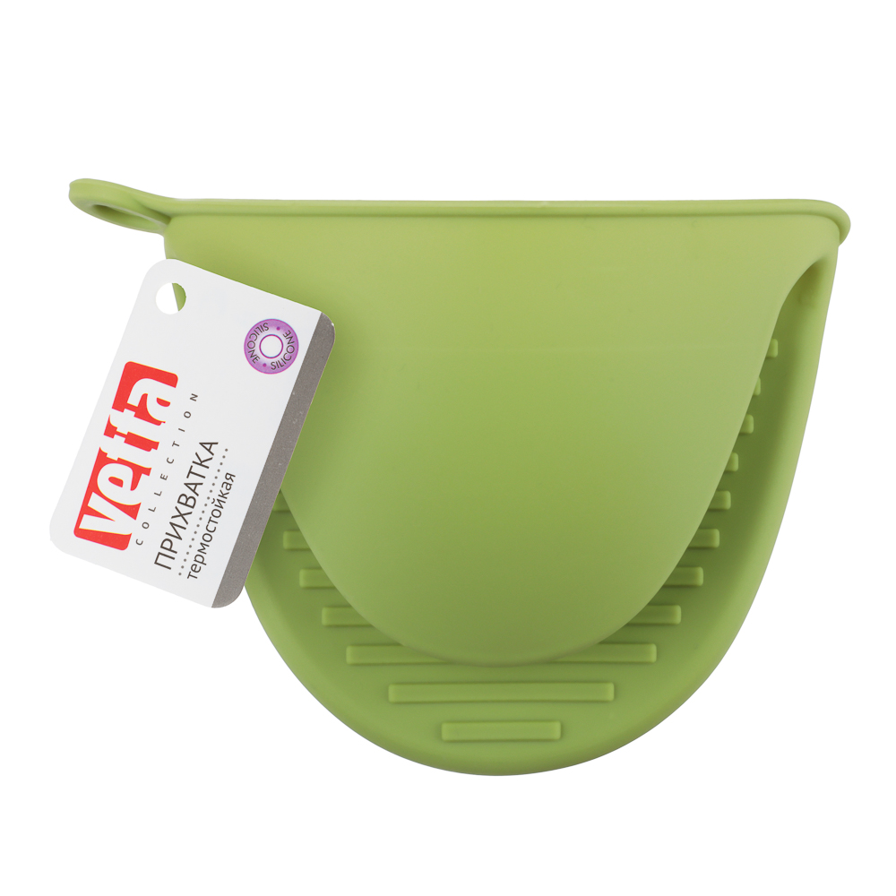 Прихватка из силикона Vetta позволяет защитить ладонь и пальцы от нежелательного воздействия высоких температур. Ребристая поверхность предотвращает скольжение. С помощью такой рукавицы ваши руки будут защищены от ожогов, когда вы будете ставить в печь или доставать из нее выпечку. Размер 9,5х8 см. Материал: силикон.