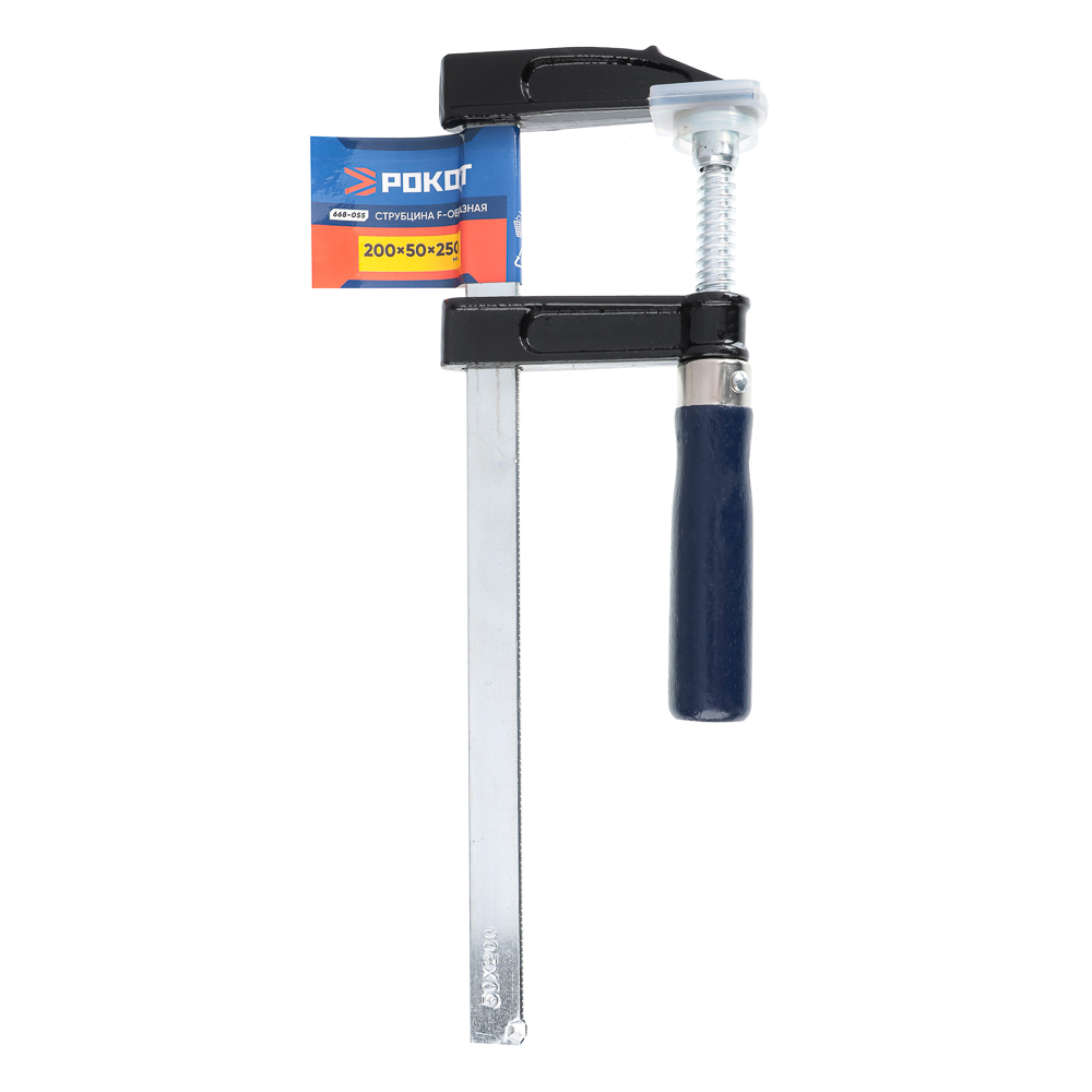 Струбцина РОКОТ F-образная 200x50x200 обеспечивает сжатие между собой листового материала. Инструмент оснащен губками, которые увеличивают площадь, по которой распределяется давление. Это исключает повреждение деталей. Рукоятка обеспечивает надежное затягивание и упрощает работу со струбциной.