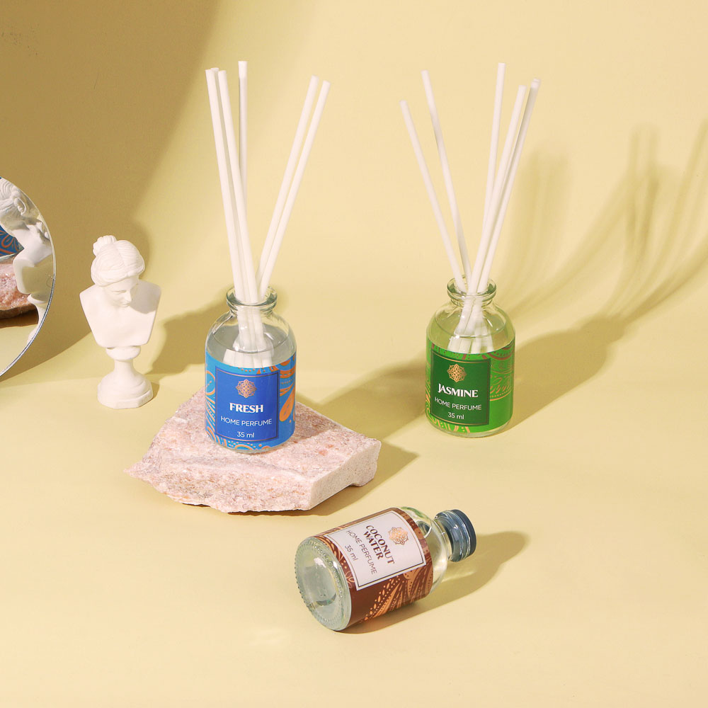 Хотите создать уют в своем доме или квартире? Аромадиффузор с палочками, 35 мл, Ladecor - идеальное для этого решение, ваша комната будет окутана приятным ароматом, создавая атмосферу тепла и спокойствия в доме. К тому же благодаря интересному дизайну набора, комната приобретет лаконичный и законченный вид. Чтобы порадовать себя и близких, достаточно купить этот ароманабор. В ассортименте 6 ароматов: жасмин, лаванда, сандал, свежесть, кокос, весенние травы.