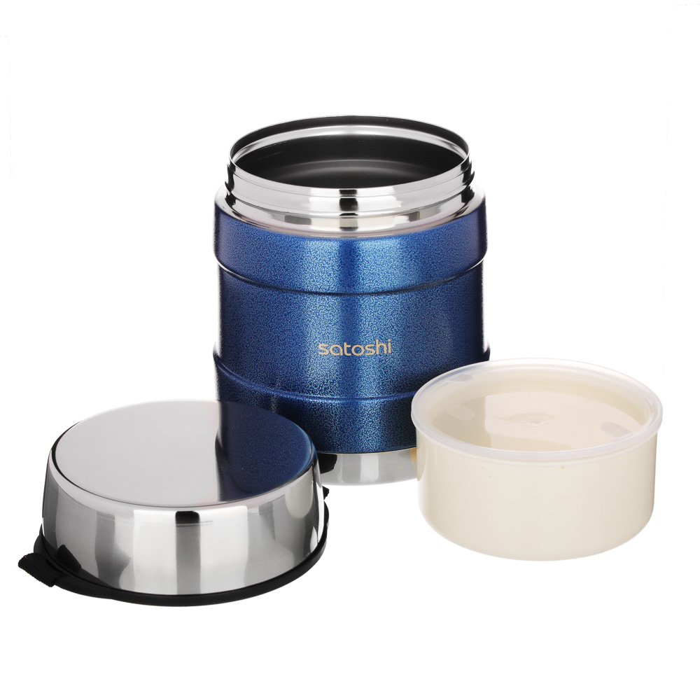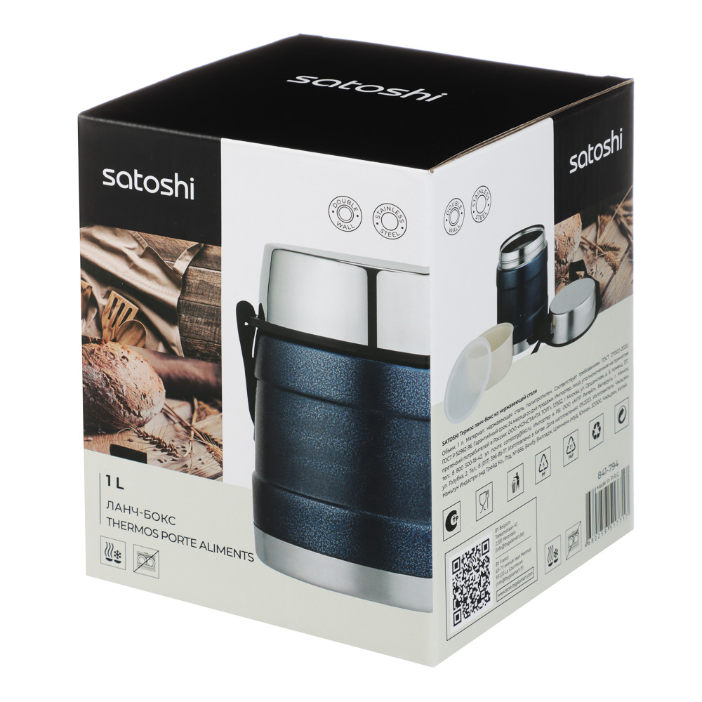 Ланч-Бокс SATOSHI — надежный компаньон активных людей, которые не хотят отказываться от домашнего обеда в офисе, на пикнике в парке или во время рыбалки. Аксессуар объемом 1 л позволяет брать с собой любимые блюда. Материал прекрасно удерживает тепло, не позволяя пище быстро остывать. Внешнее покрытие аксессуара выполнено из нержавеющей стали, устойчивого к воздействию различных внешних факторов. Ланч-бокс оснащен удобной крышкой, обеспечивающей 100%-ю герметичность. Вы можете ехать на велосипеде и подниматься в горы, не переживая, что содержимое емкости выльется и испачкает ваши вещи.
