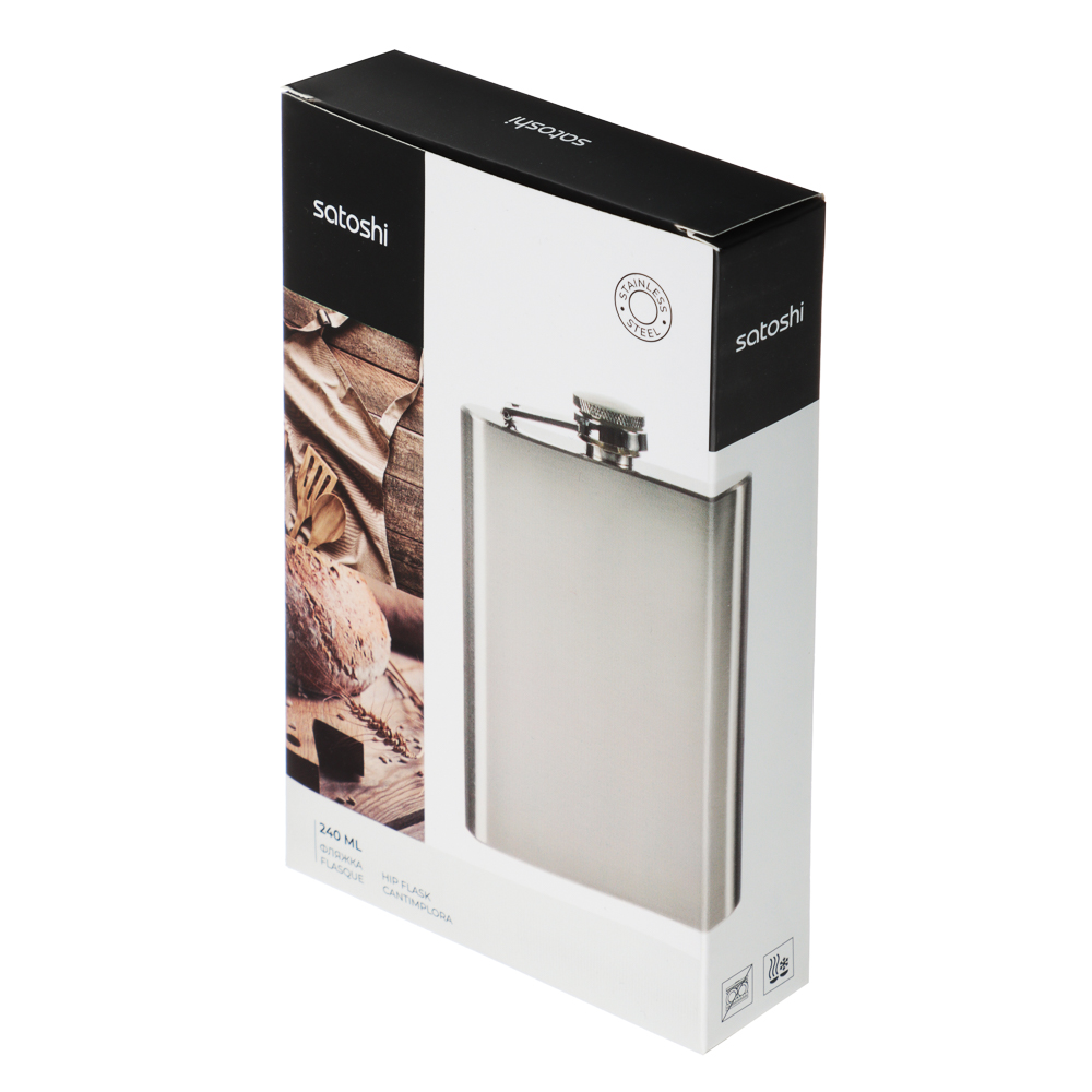 Фляжка объемом 240 мл из нержавеющей стали станет отличным спутником на охоте, рыбалке и в туристическом походе. Горячительный напиток под рукой не позволит замерзнуть холодным осенним вечером или морозным зимним утром. Гигиеничный материал не ржавеет, не меняет вкус напитков, выдерживает интенсивную эксплуатацию в любых условиях. Надежная крышка предотвращает проливание жидкости.