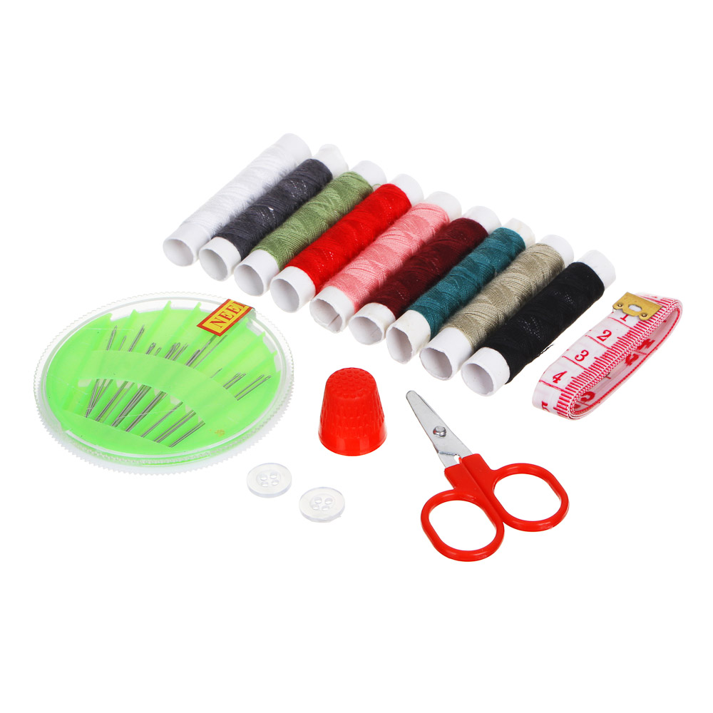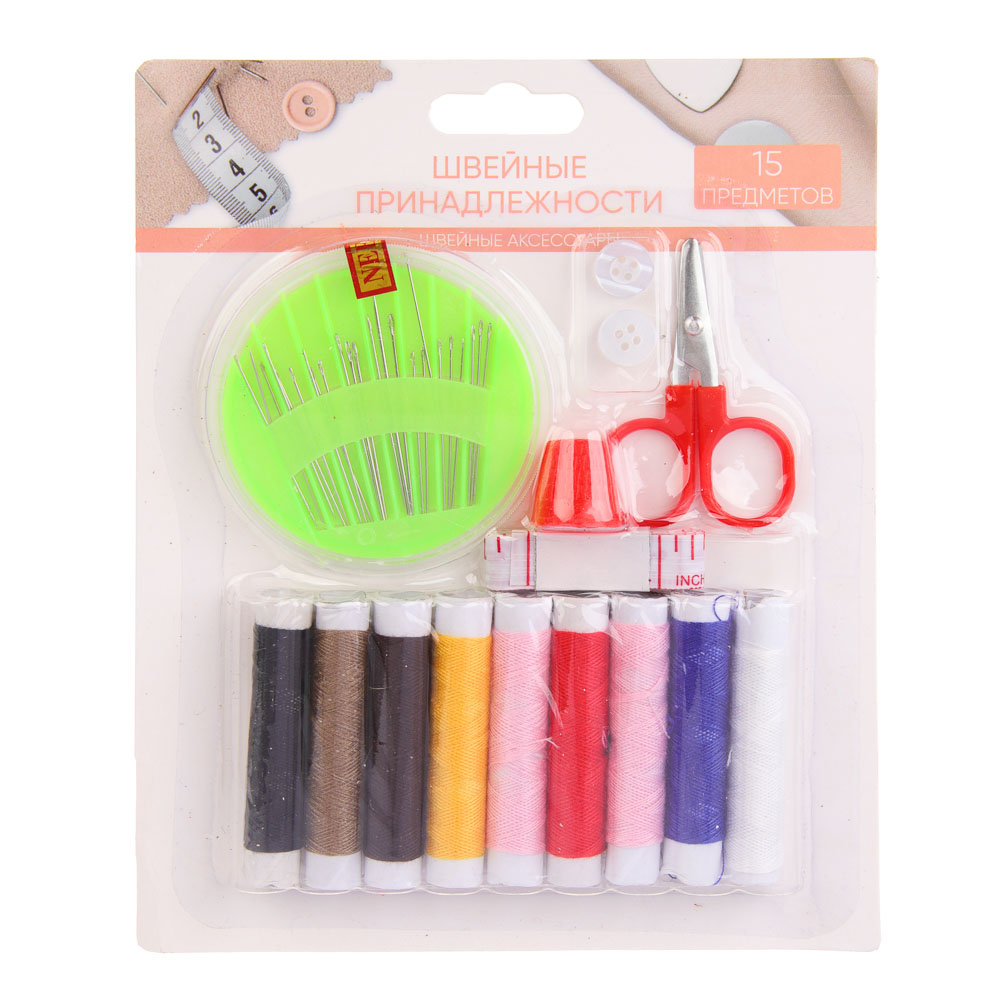 Набор швейных принадлежностей ШП2019-2 от GALANTE представляет собой комплект из 15 предметов, идеально подходящий для широкого круга швейных задач. Включает в себя следующие элементы:Ножницы: основной инструмент для точной обрезки тканей.Нитки: 9 цветов, что обеспечивает разнообразие выбора при шитье.Наперсток: для защиты пальцев при работе с иглами.Сантиметровая лента: для точных измерений ткани.Иголки в футляре: удобное хранение и защита иголок.Пуговицы.Набор идеально подходит для использования в дорожных условиях.