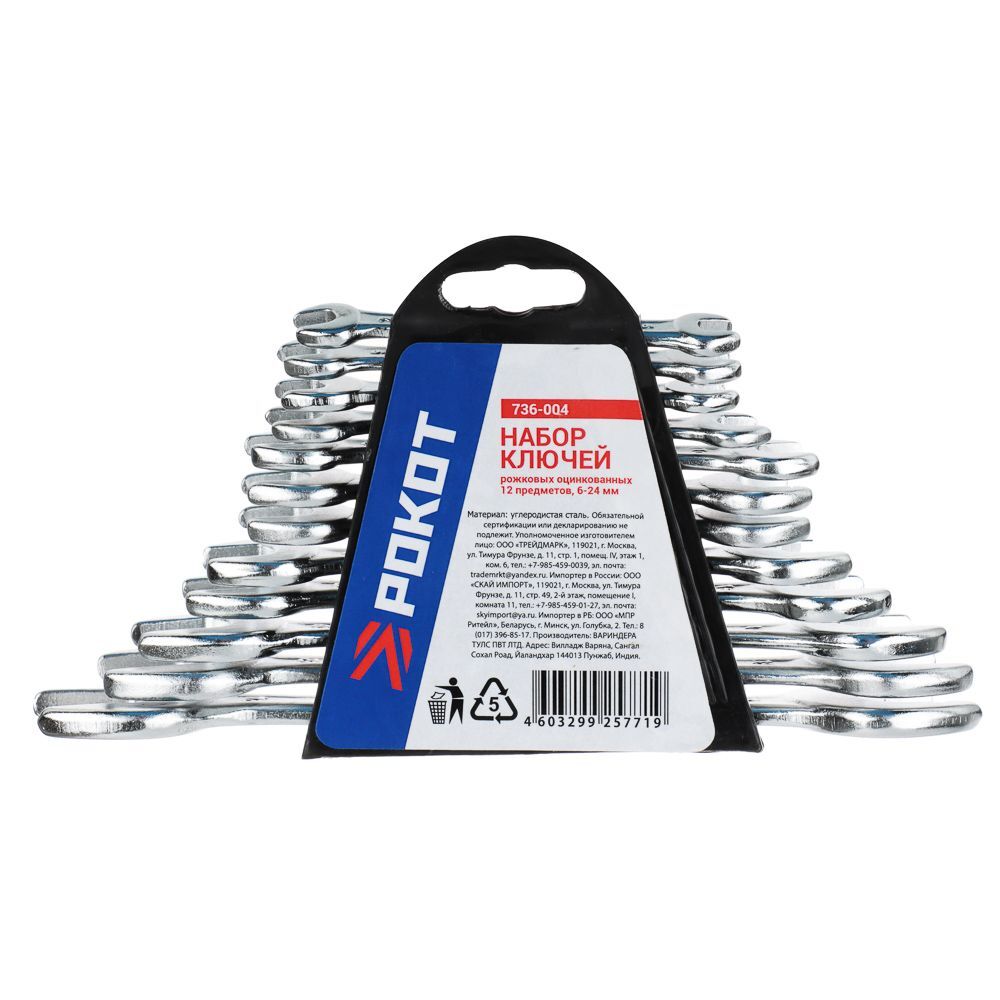 РОКОТ Набор ключей рожковых оцинк. в пластик. подвесе 12 пр., 6-24мм