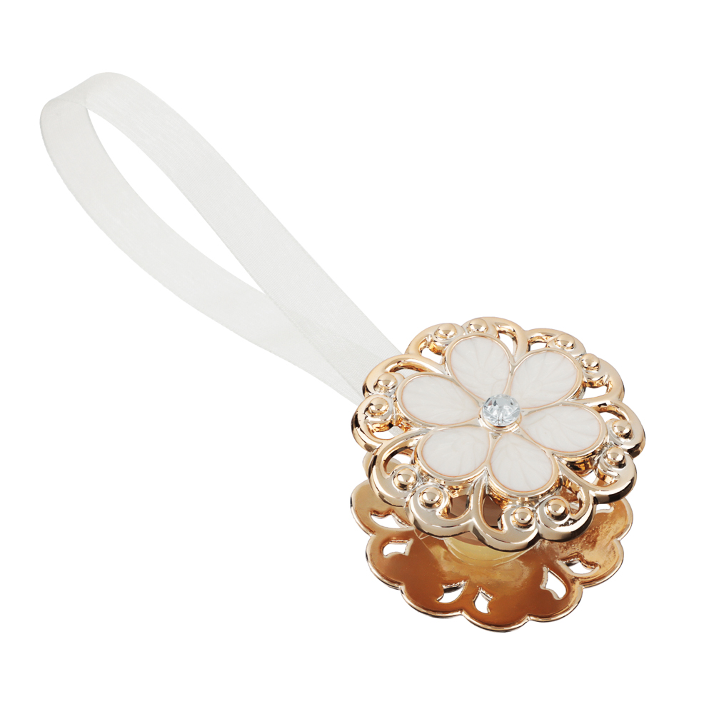 Двухсторонний магнитный подхват для штор PROVANCE «Цветок» — это стильный и функциональный аксессуар, который поможет вам красиво оформить шторы в вашем интерьере. Подхват выполнен в виде золотистого перламутрового цветка со стразами и оснащён мощным магнитом, который позволяет легко и надёжно закрепить шторы в нужном положении. Это особенно удобно для лёгких и средних тканей. Стильный дизайн подхвата «Цветок» подойдёт для любого интерьера, а особенно оживит и освежит интерьер комнаты в стиле барокко. С помощью подхвата вы сможете регулировать количество света в комнате и создавать уютную атмосферу. Подхват изготовлен из качественных материалов, которые не выцветают и не теряют своих свойств со временем. Он легко надевается и снимается, фиксируется в любом месте и не требует крепления к стене, а также прост в уходе.