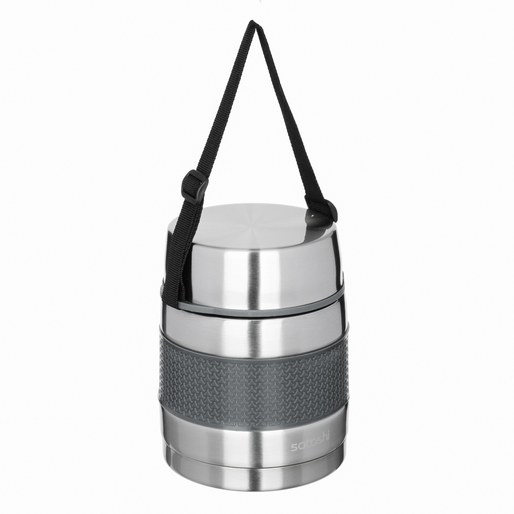 Не терпите фаст-фуд и печенье в пачках? Специально для людей, которые любят питаться полезной и вкусной пищей даже за пределами дома, торговая марка Satoshi создала ланч бокс Ямато из нержавейки. В таком контейнере еда остается свежей, сохраняет природный вкус и аромат. Двойные стенки в тандеме с герметичной крышкой прекрасно удерживают тепло, не позволяя блюдам быстро остывать. Можете смело бросать термос для еды на заднее сиденье автомобиля. Ничего не прольется. Удобно переносить в руках благодаря наличию регулируемого ремешка. Прорезиненные вставки на корпусе облегчают использование.Причины купить ланч бокс Satoshi Ямато:• материал — нержавеющая сталь,• двойные стенки дольше сохраняют высокую температуру,• объем 1 литр — для 3-4х стандартных порций,• можно ставить в холодильник для хранения блюд,• прорезиненные накладки предотвращают скольжение рук,• регулируемый ремень для переноски.