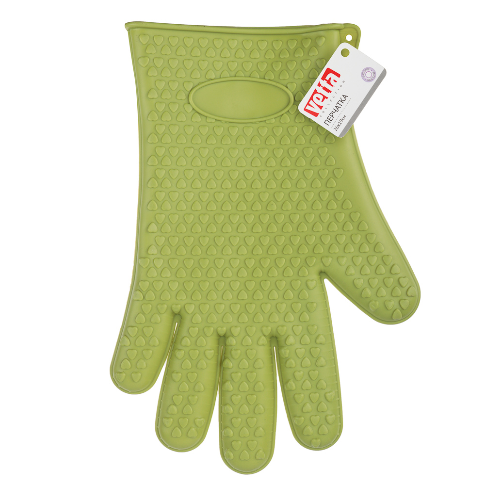 Прихватка Vetta в форме перчатки из силикона с рифленой поверхностью, препятствующей скольжению, предназначена для защиты рук от воздействия высоких температур. Универсальная форма прихватки дает возможность использовать ее как правой, так и левой рукой. Очень приятная на ощупь, невероятно гибкая, выдерживает большой перепад температур от -40 C до +230 С. Легко моется в посудомоечной машине. Удобно и прочно сидит на руке. С помощью такой прихватки ваши руки будут защищены от ожогов, когда вы будете ставить в печь или доставать из нее выпечку.