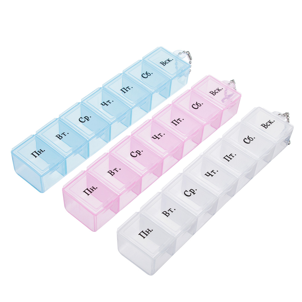 Пластиковый бокс для хранения таблеток VETTA – это компактный и удобный органайзер для таблеток, БАДов и витаминов. Имеет 7 блоков с маркировкой по дням недели. Благодаря небольшому размеру 15х3,3 см, этот контейнер легко помещается в сумке или на столе, обеспечивая удобство хранения и использования. Изготовлен из прочного пластика. Удобная цепочка позволяет вам легко носить контейнер с собой, гарантируя доступность ваших лекарств в любое время. С контейнером для таблеток "Ежедневный" вы можете быть уверены, что ваша дневная доза лекарств всегда будет у вас под рукой. Купите органайзер для таблеток сейчас, чтобы сделать процесс приема лекарств более организованным и удобным!