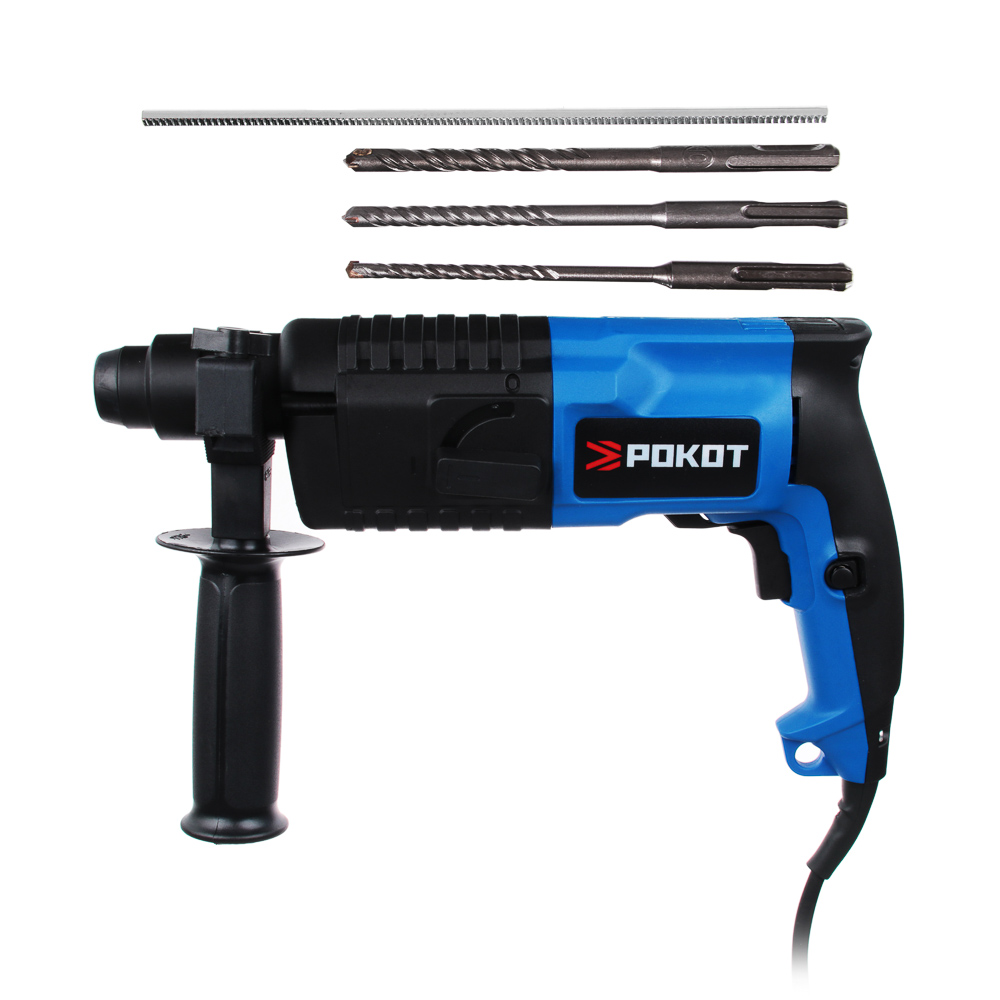 Перфоратор РОКОТ — это ручной электроинструмент, в котором рабочая часть совершает не только возвратно-поступательные (ударные) движения, но еще и вращается. При этом обрабатываемый материал не срезается острой кромкой, а разрушается от ударов. Конструкция агрегата предусматривает несколько режимов работы, и тот, который нужен для конкретной цели, легко выбирается переключателем на корпусе. Множество быстро сменяемых насадок превращает перфоратор в такое универсальное устройство, которое можно применять для: • пробивания сквозных отверстий в стенах и перекрытиях;• создания глухих отверстий под анкеры и дюбеля;• штробления строительных поверхностей для прокладки электропроводки и труб;• сверления металла и других операций.