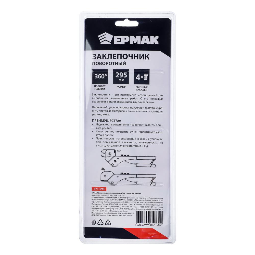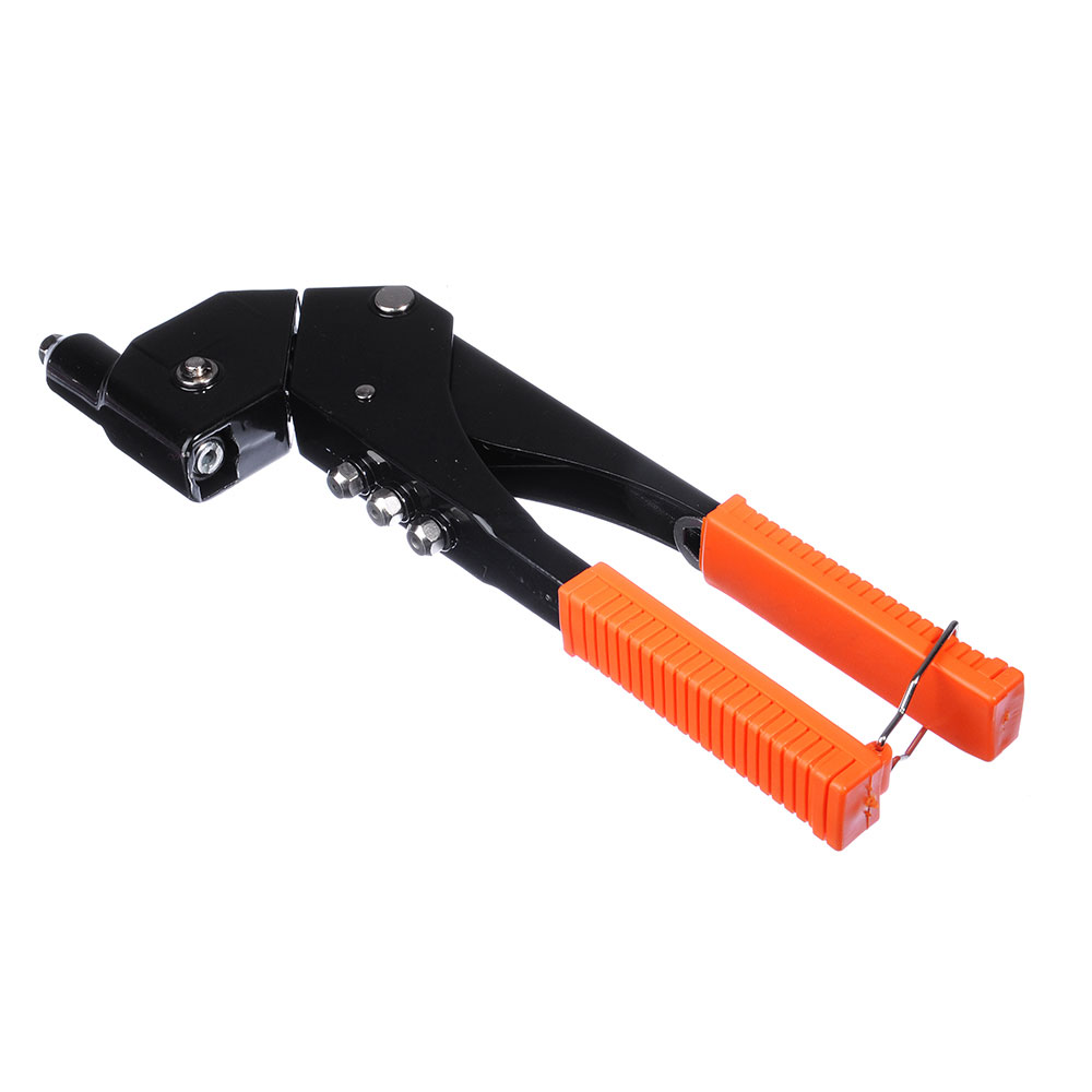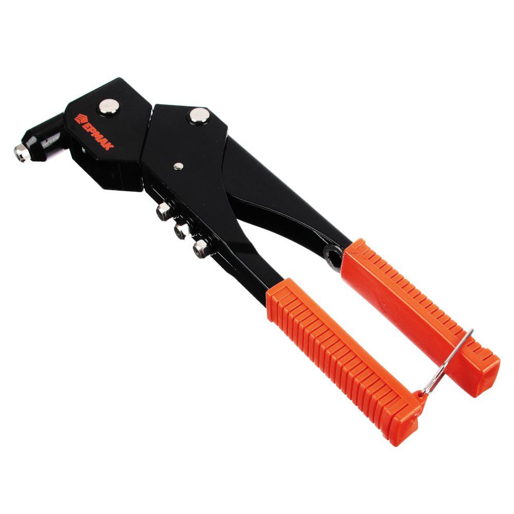 Профессиональный заклепочник ручной – это строительный инструмент оснастка, который используется для надежного, устойчивого к вибрациям скрепления соединения друг с другом тонких материалов, запчастей посредством установки вытяжных заклёпок из алюминия и стали различного размера диаметра. Корпус универсального заклепочникого клепального пистолета с поворотной частью для облегчения установки заклепок в труднодоступных местах изготовлен из качественной стали, имеет литой металлический корпус, не г