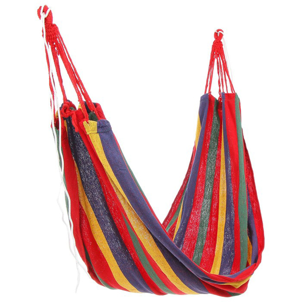 Полосатый гамак дарит комфортный отдых на свежем воздухе. Мягкое покачивание расслабляет, успокаивает и позволяет ощутить истинное наслаждение от пребывания на природе. Изделие сшито из двух высококачественных материалов: воздухопроницаемого хлопка и прочного полиэстера. Максимальная нагрузка составляет 100 кг. Купить полосатый гамак РУССО ТУРИСТО можно для дачи и сада в двух цветовых вариантах.