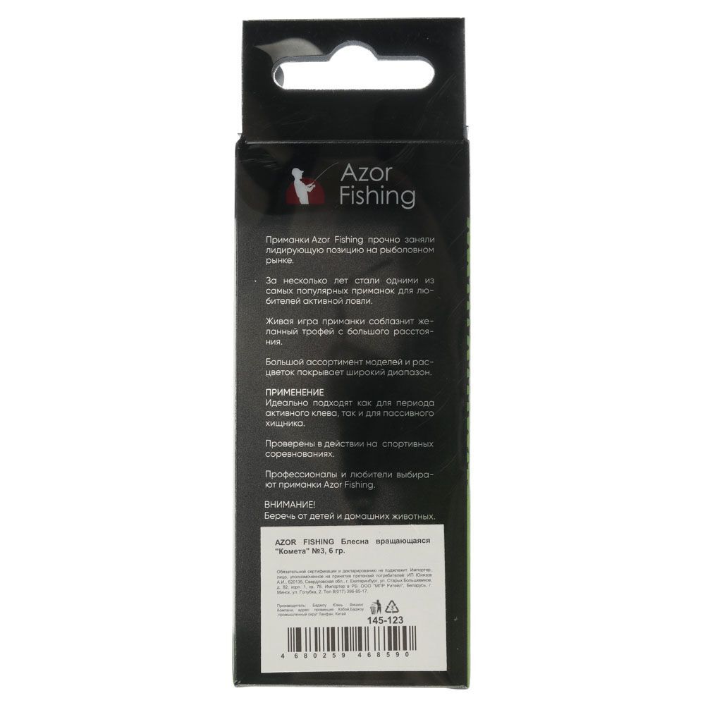 Блесна вертушка Azor Fishing №3 с тройником предназначена для ловли хищной рыбы весом до двух килограмм. Приманка овальной формы имеет большое сопротивление. Обеспечивая сильное эхо в водном пространстве, она привлекает пресноводных хищников с дальних расстояний. Помимо размера и цвета на результат рыбалки влияет частота вращения блесны. Окунь реагирует на высокочастотные и быстрые снасти, щука — на малочастотные и медленные.