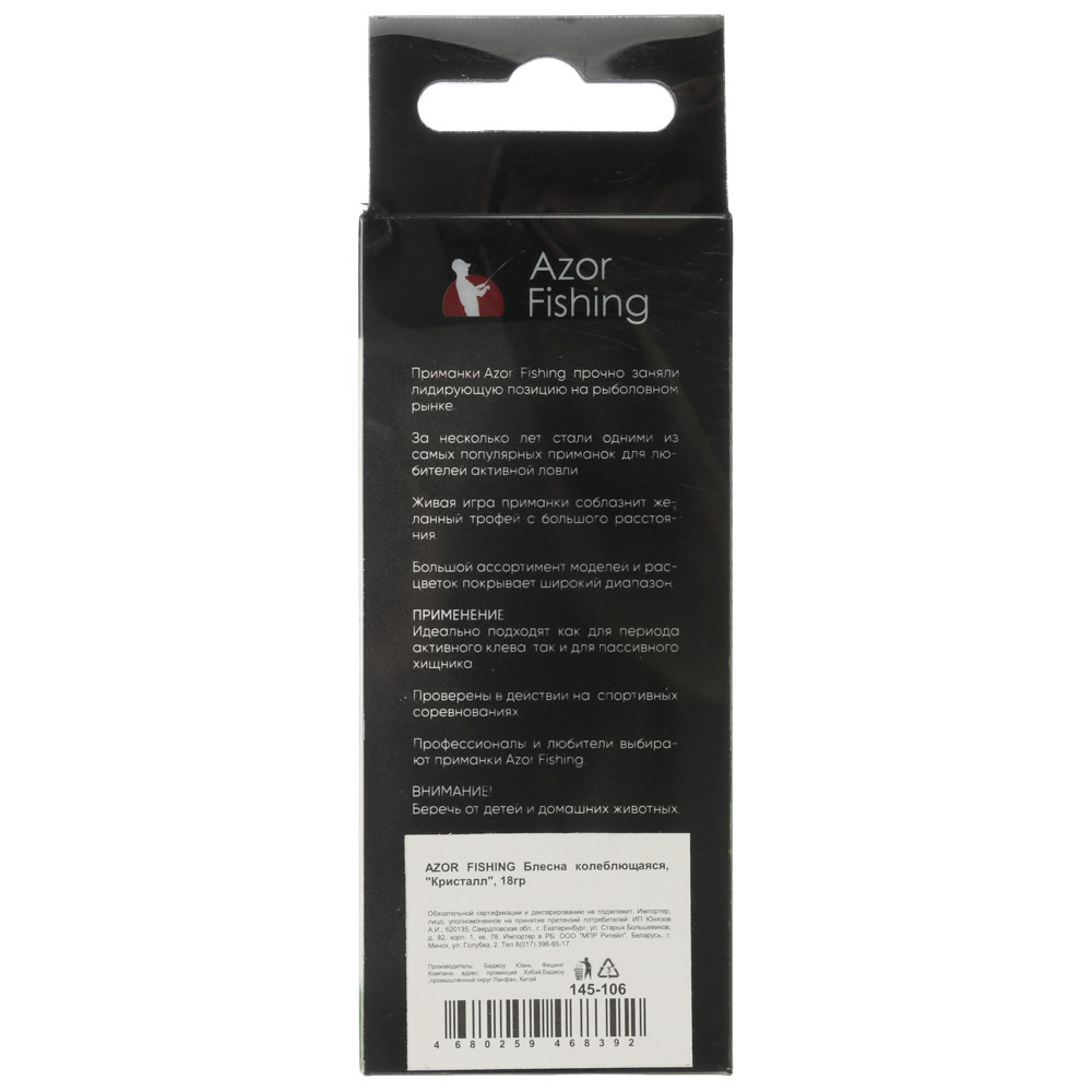 Нужно привлечь внимание пресноводного хищника? Колеблющаяся блесна Azor Fishing легко справится с этой задачей. Металлическая пластина имитирует движение раненной рыбы. Эффективна для ловли ленивых хищников, особенно щуки, судака и окуня. Выпускается в нескольких цветах. Вес рыболовной снасти — 18 грамм. Хвост оснащен тройным крючком.