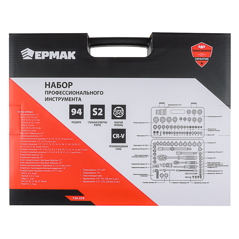 Набор профессионального инструмента ТМ ЕРМАК - надежный и практичный комплект, предназначенный для ремонтных работ и обслуживания вашего автомобиля. Изделия набора изготовлены из хромованадиевой и инструментальной стали, что гарантирует работу при больших нагрузках и долгий срок службы. Эргономичные ручки способствуют удобному хвату во время работы. Пластиковый кейс обеспечит компактное хранение и удобную транспортировк.