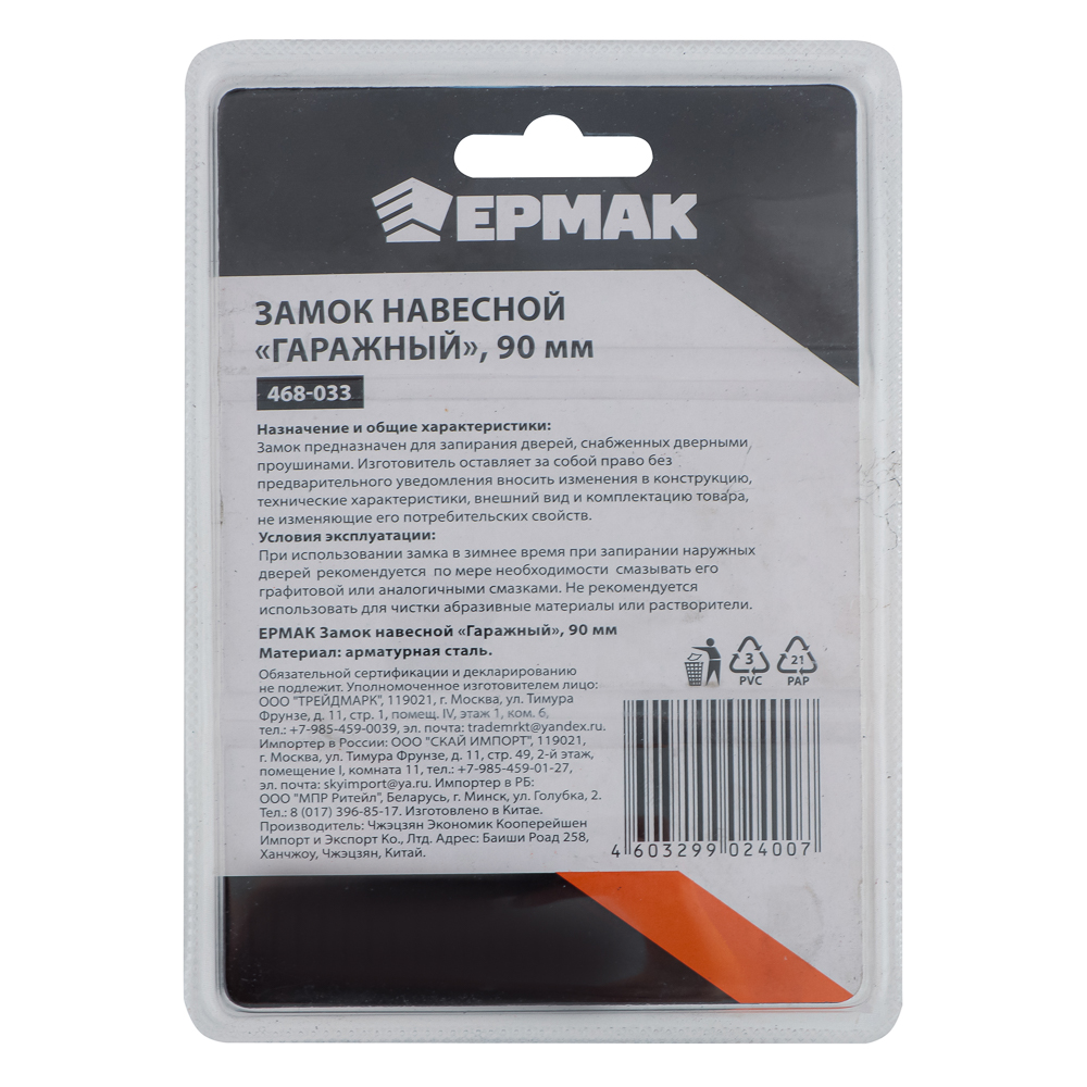 Навесные замки торговой марки ЕРМАК - это надежный защитник любого помещения.Сложная конструкция замка повышает стойкость к взлому, а стальная дужка снижает вероятность её распила. Корпус изготовлен из высокопрочного чугуна, что гарантирует долгий срок службы в любых климатических условиях